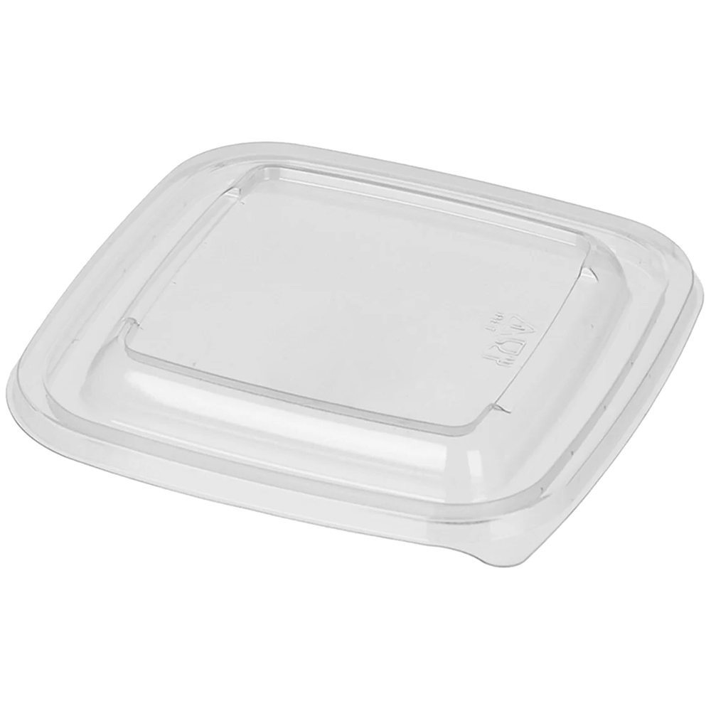 Прозрачные крышки ПЭТ для контейнеров, длиной 126 мм, шириной 126 мм, высотой 13 мм, в упаковке по 500 штук. Материал – полиэтилентерефталат (ПЭТ). Производятся в России.