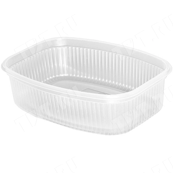 Прозрачные пищевые контейнеры без крышек, объемом 350 мл, длиной 139 мм, шириной 102 мм, высотой 43 мм, в упаковке по 50 штук. Материал – полипропилен (ППП). Производятся в России.