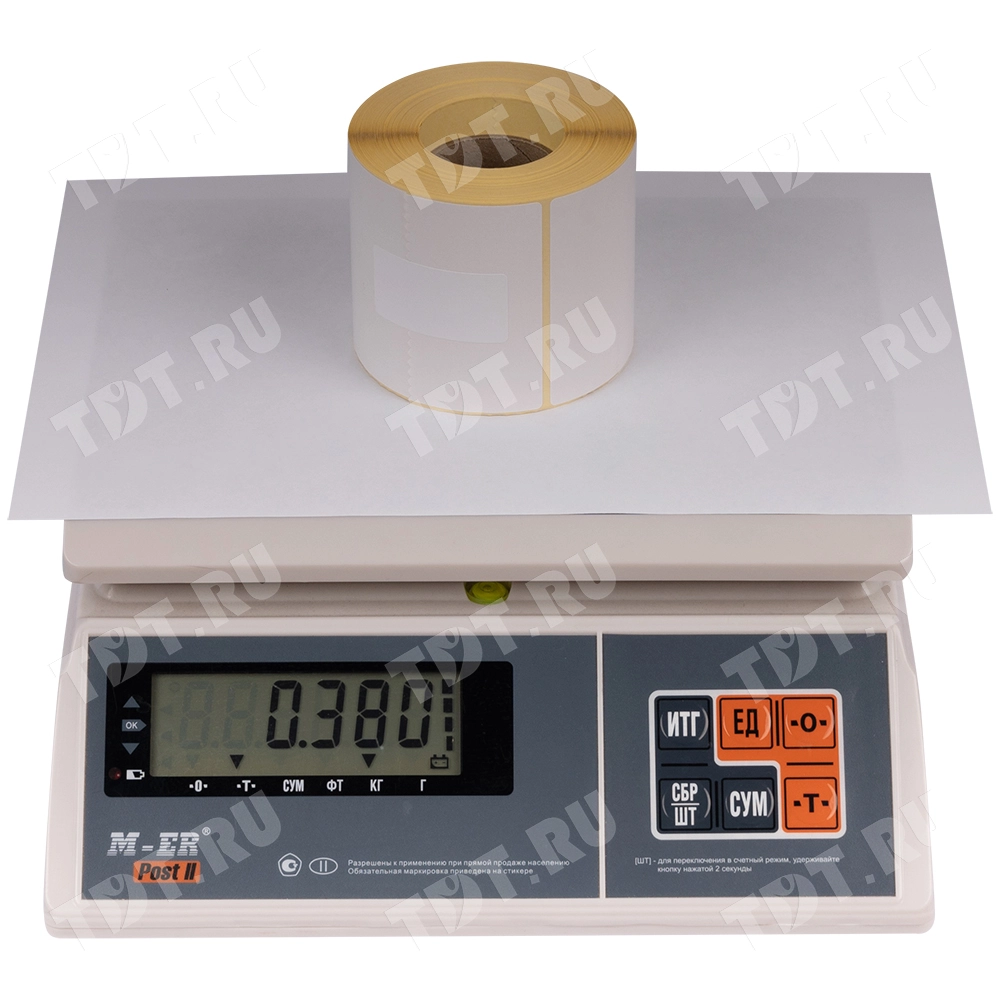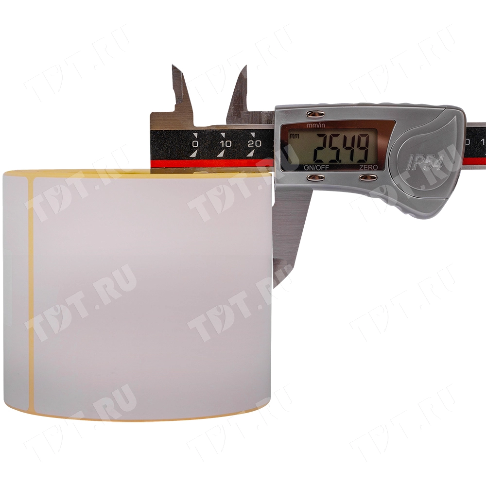 Самоклеящиеся этикетки ЭКО из матовой бумаги белого цвета, шириной 75 мм, высотой 120 мм, диаметром втулки 40 мм, количеством в рулоне по 300 штук. Производятся в России. Термоэтикетки ЭКО в рулонах предназначены для печати на принтерах без риббона. На этикетках есть специальный слой, который при нагреве термоголовки принтера темнеет, за счет этого происходит печать.