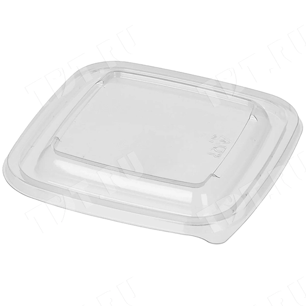 Прозрачные крышки ПЭТ для контейнеров 9603858, длиной 126 мм, шириной 126 мм, высотой 13 мм, в упаковке по 50 штук. Материал – полиэтилентерефталат (ПЭТ). Производятся в России.