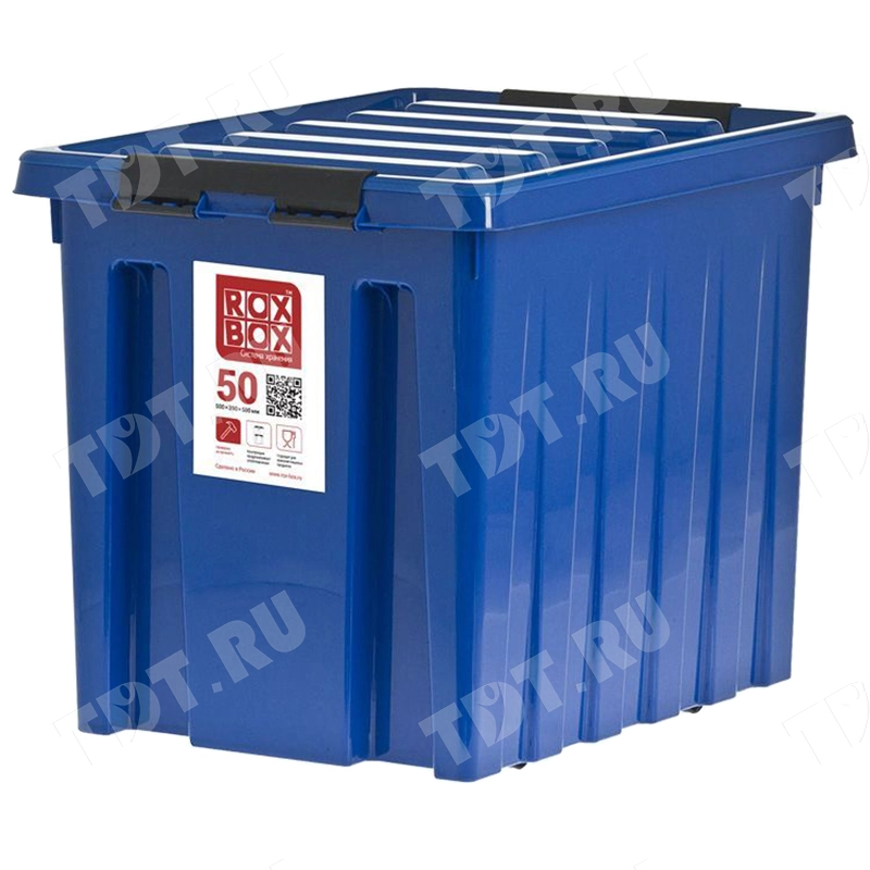 Большой синий пластиковый ящик для хранения и транспортировки вещей длиной 500 мм, шириной 390 мм, высотой 390 мм. Изготовлен из полипропилена. Производится в России.