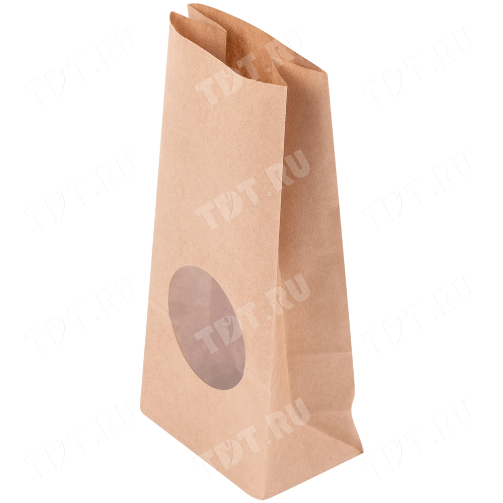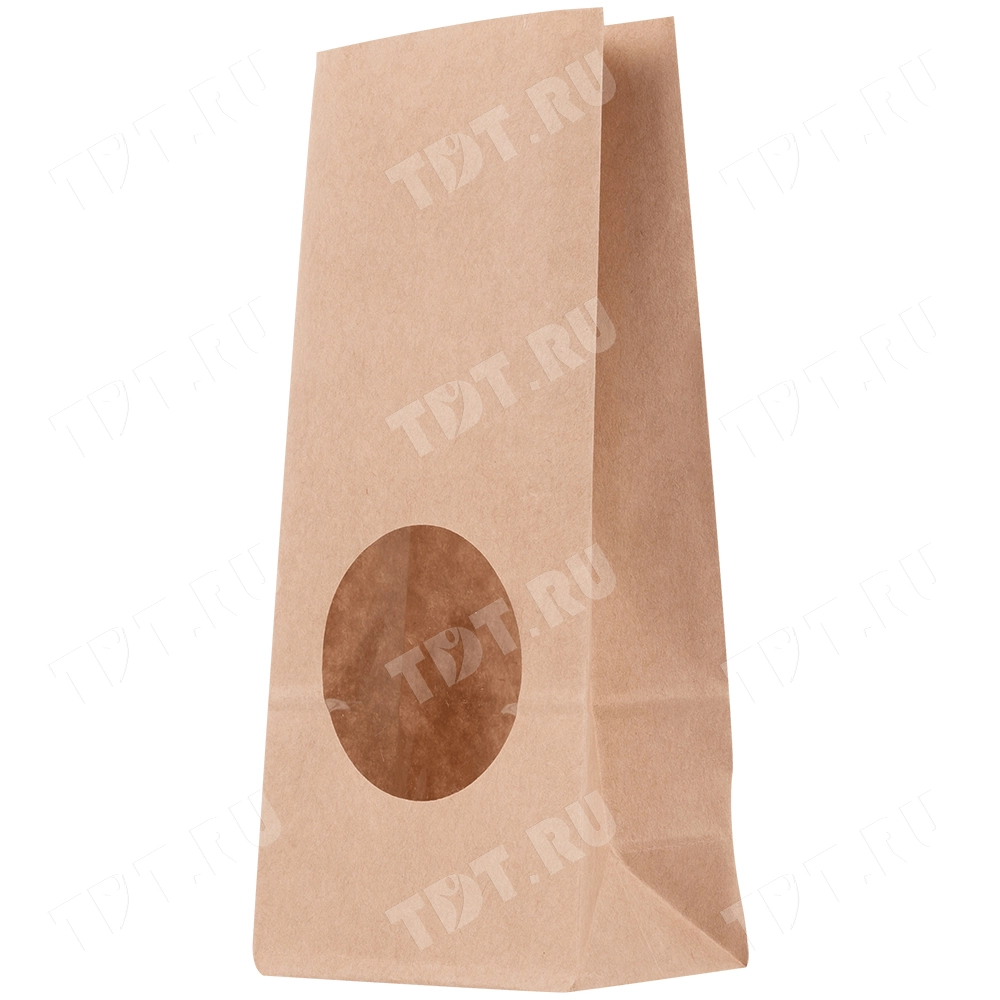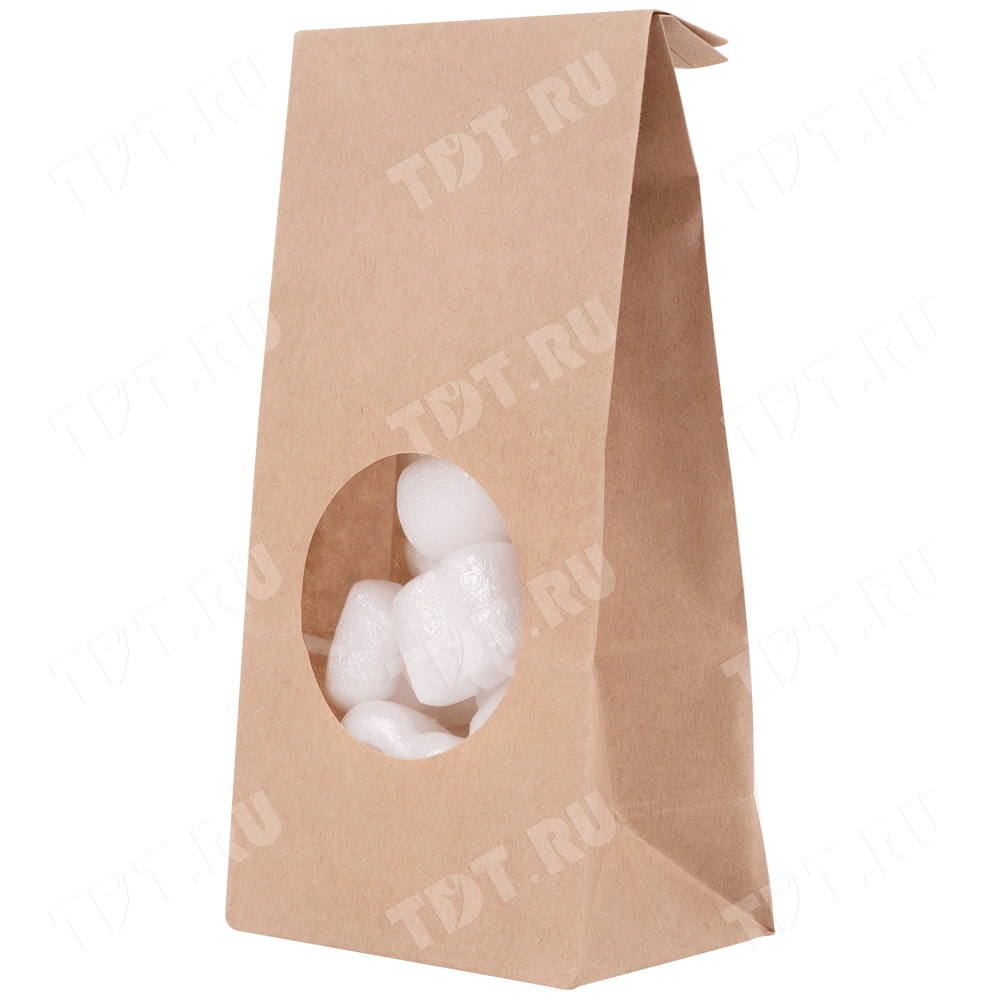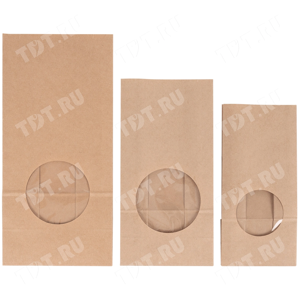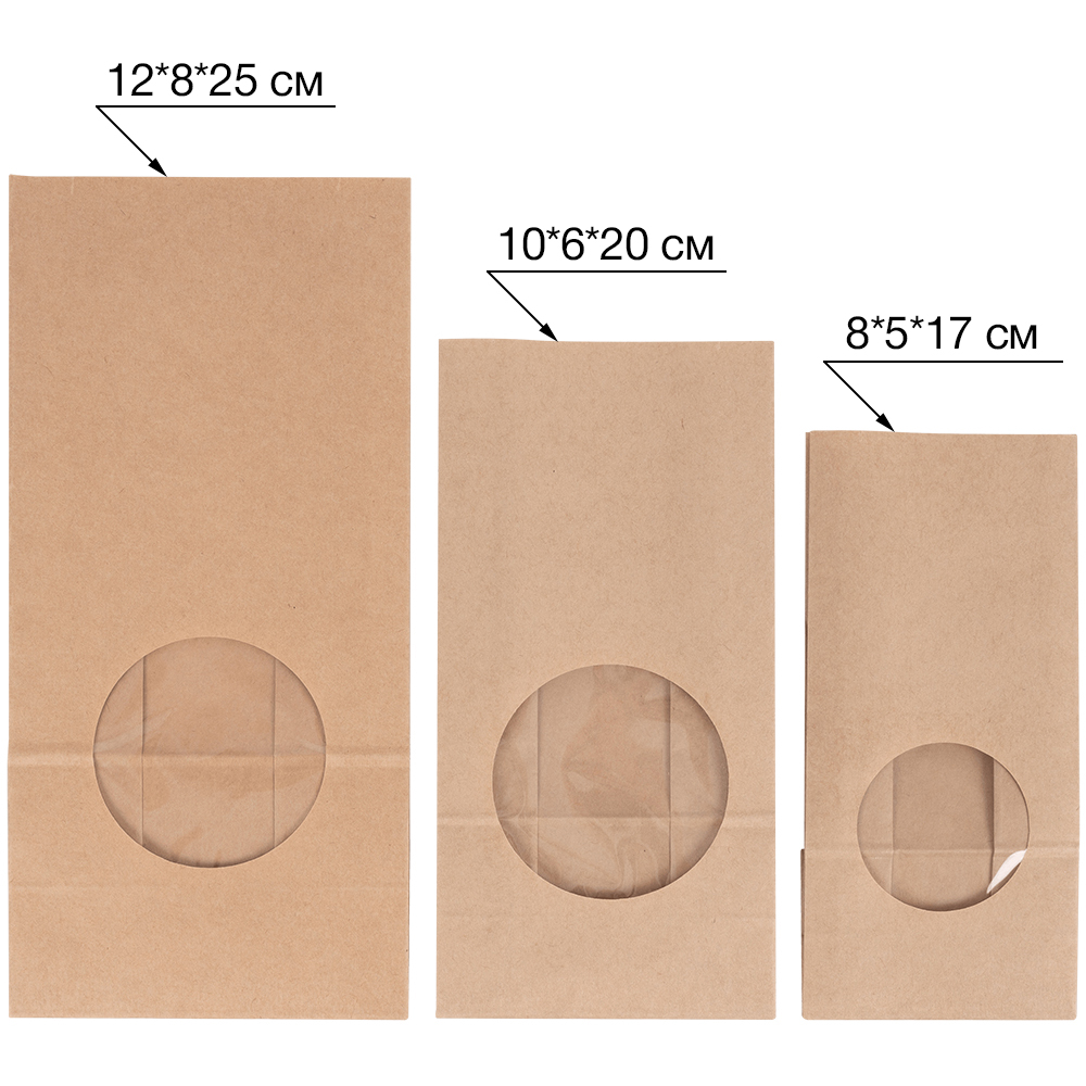 Крафт пакет с круглым окном, однослойный, 50 г/м², 8*5*17 см