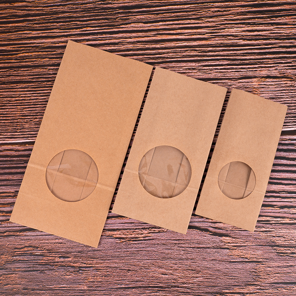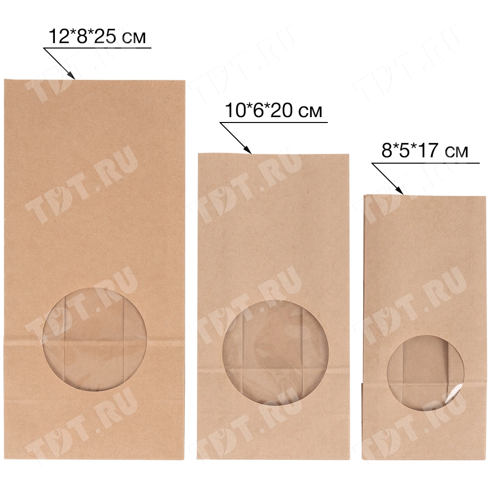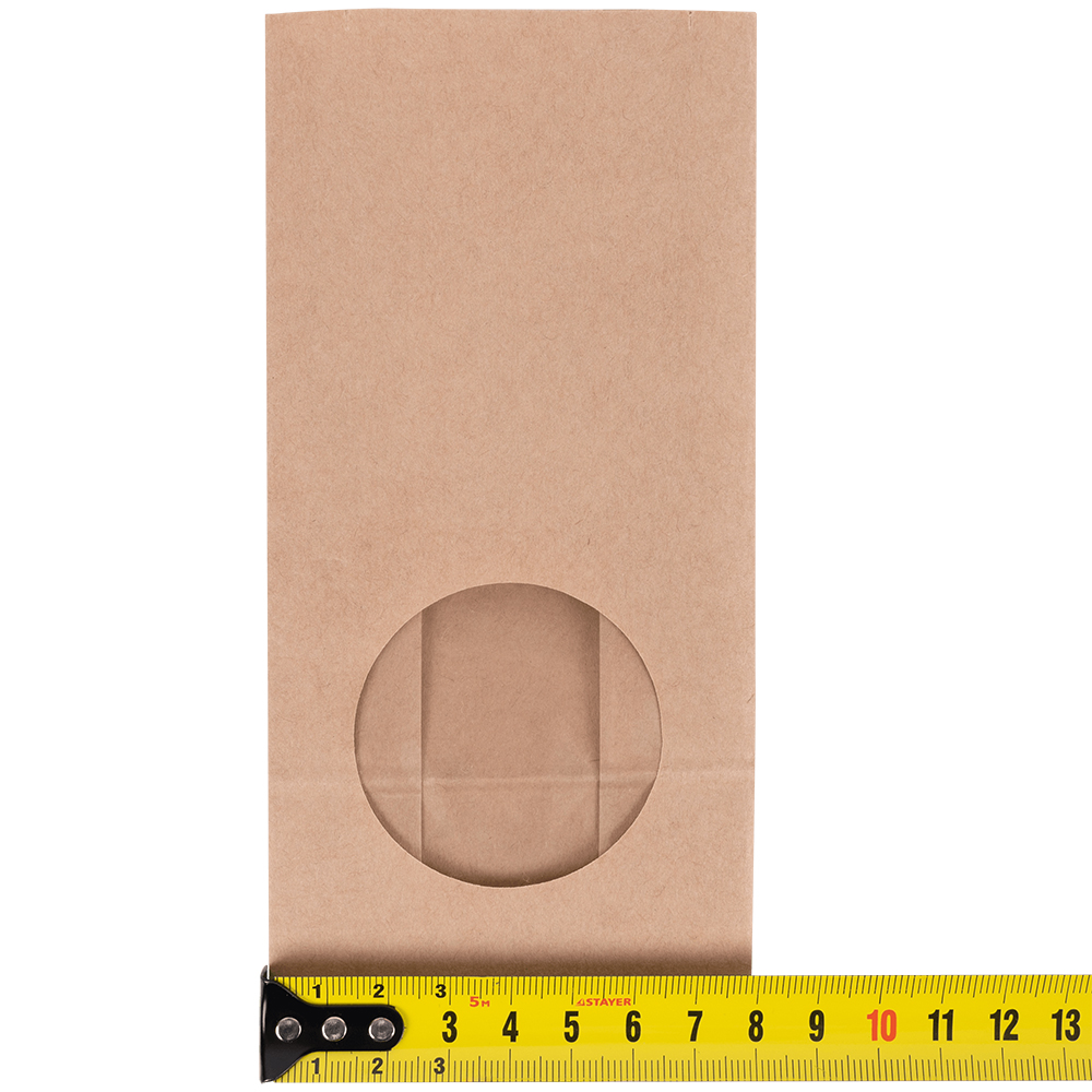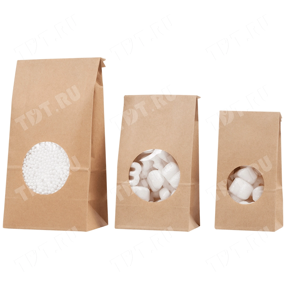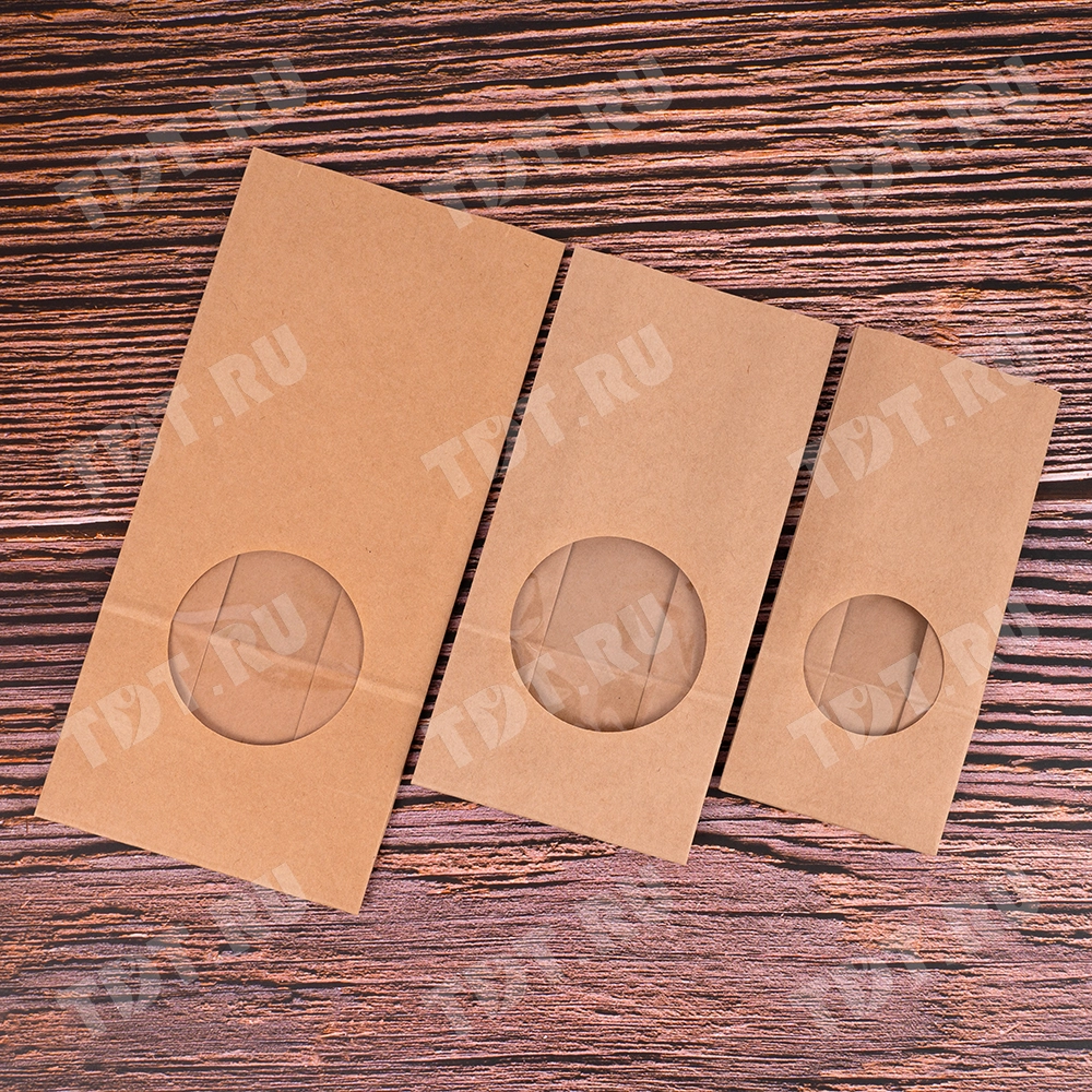 Крафт пакет с круглым окном, однослойный, 50 г/м², 8*5*17 см