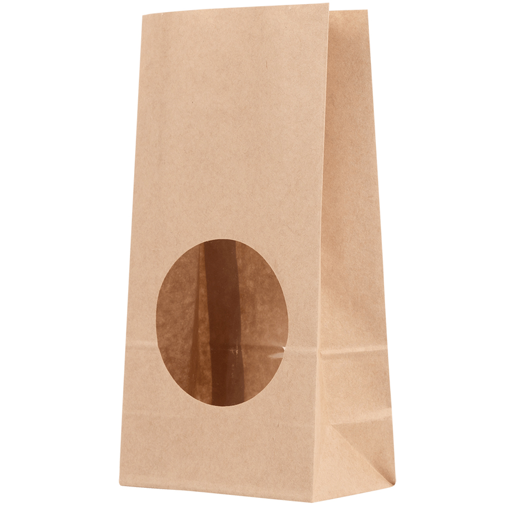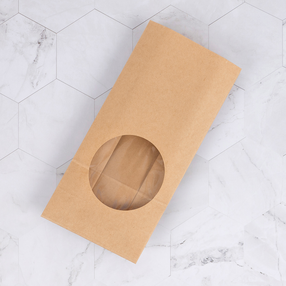 Крафт пакет с круглым окном, однослойный, 50 г/м², 10*6*20 см