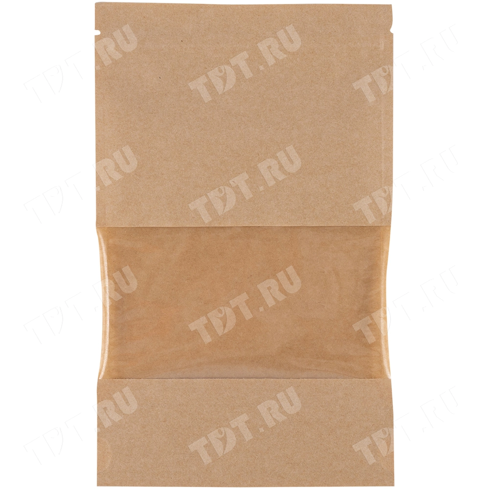 Крафт дой-пак с zip lock, прямоугольное окно 7 см, 13.5*4*22.5 см, 50 шт.