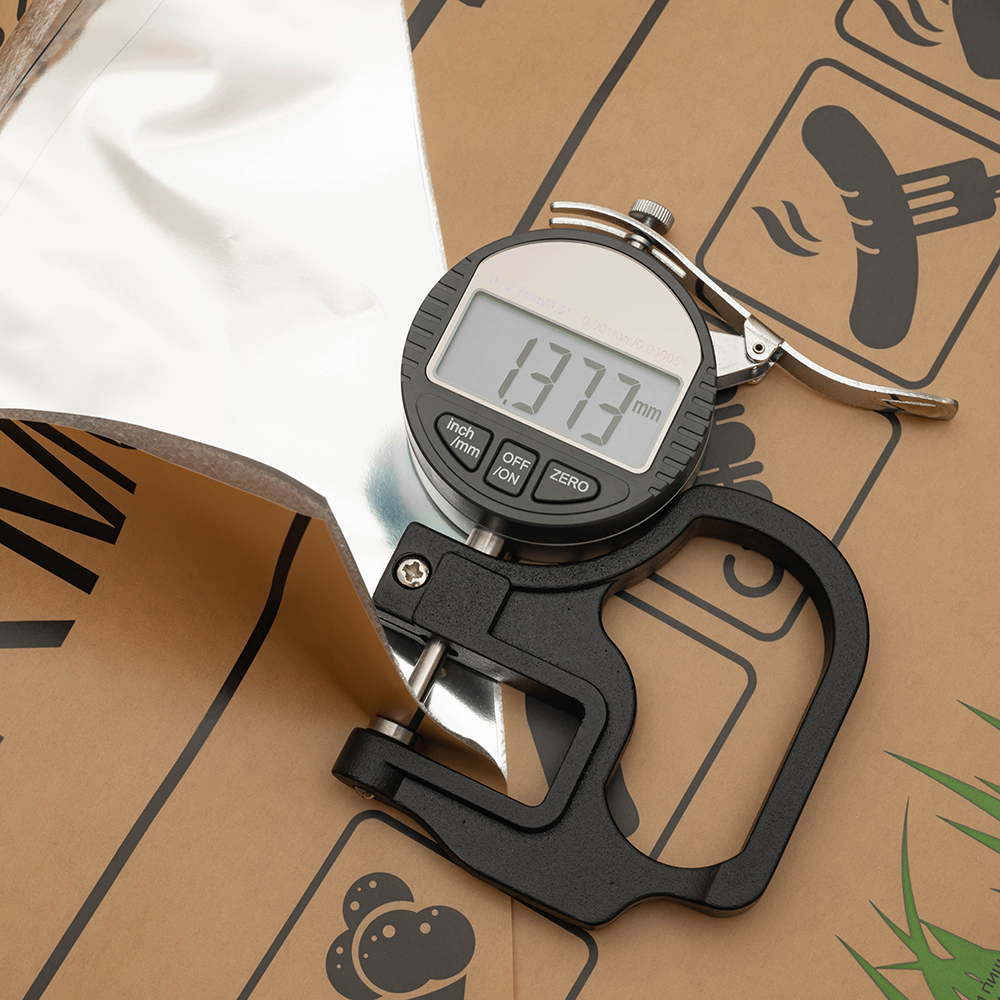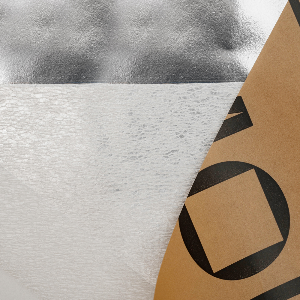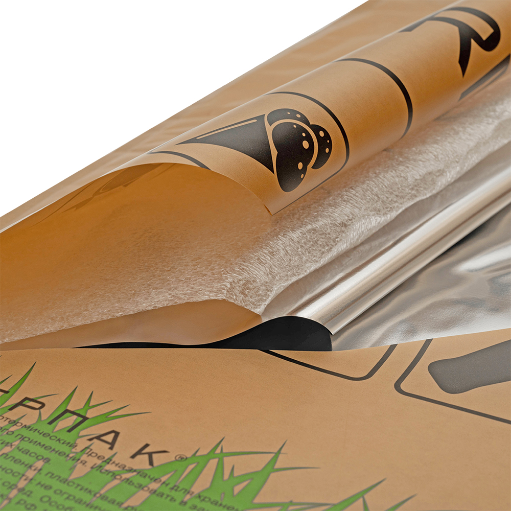 Внешний слой с логотипом изготовлен из крафт бумаги.