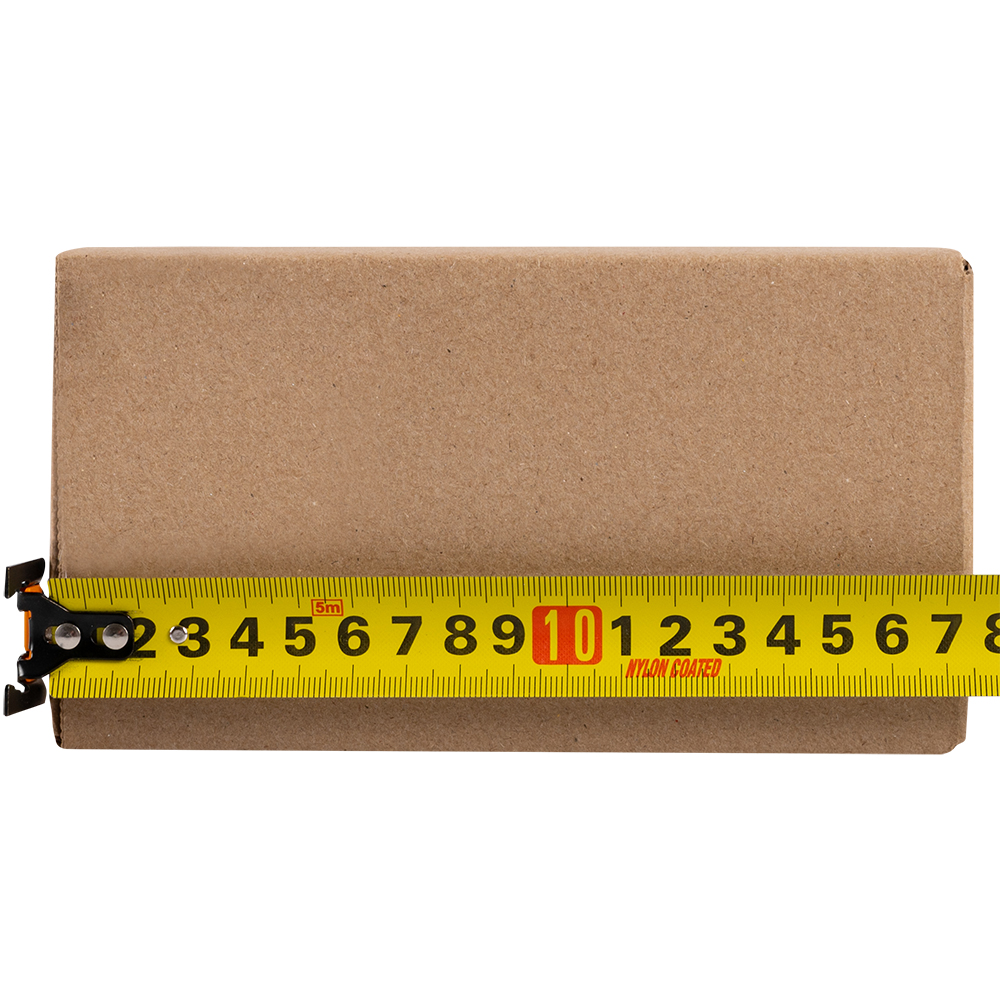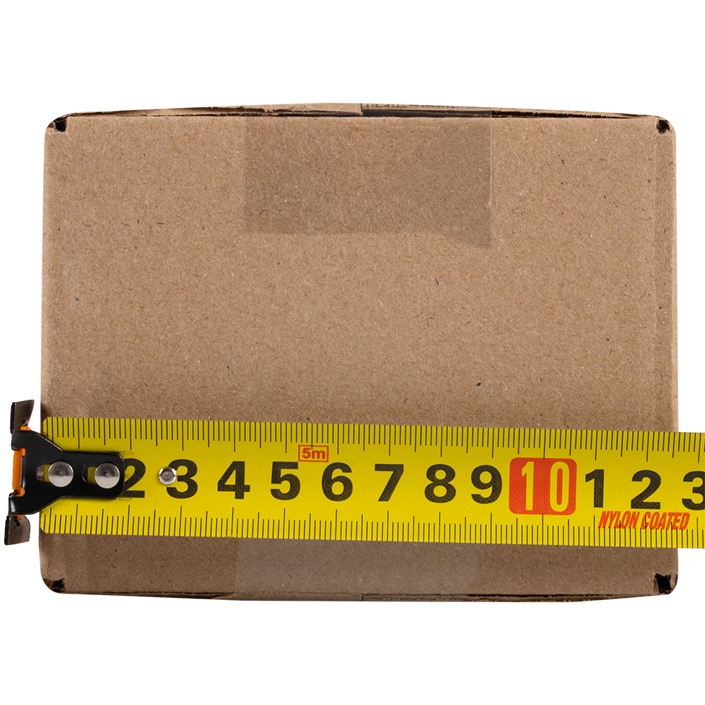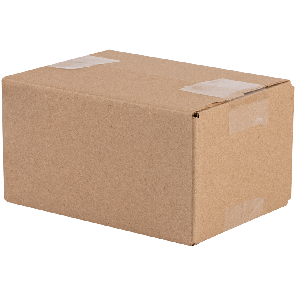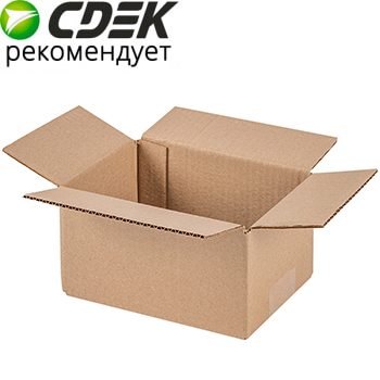 Картонный короб СДЭК тип «XS» бурого цвета, длиной 170 мм, шириной 120 мм и высотой 90 мм. Изготовлен из трехслойного картона марки Т-21 В. Полезный объём — 1.84 л.