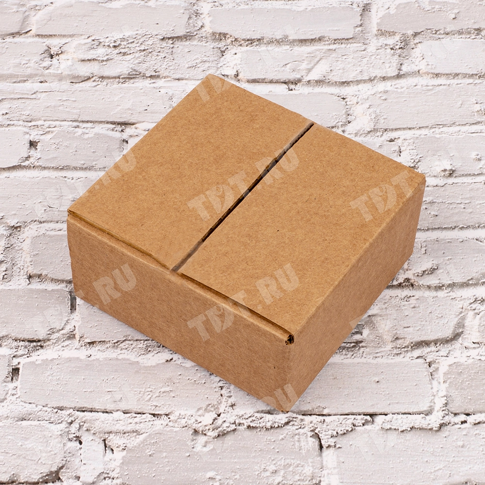 Картонный короб №151, длиной 100 мм, шириной 100 мм и высотой 45 мм. Изготовлен из трехслойного картона марки Т-23 В (целлюлоза). Полезный объём — 0.45 л.