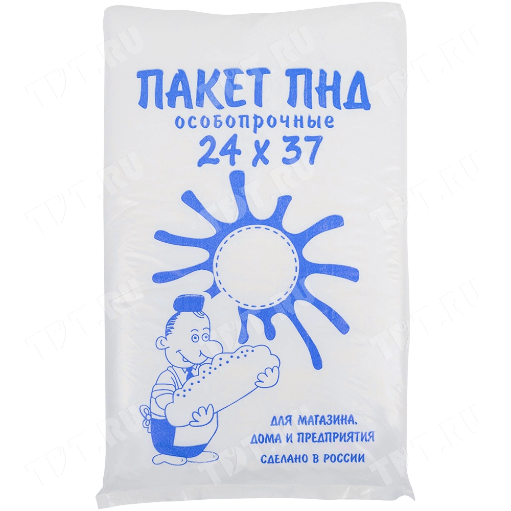 Прозрачные фасовочные пакеты ПНД прочные в пластах для упаковки длиной 37 см, шириной 24 см, толщиной 10 мкм, в упаковке по 500 штук. Материал – полиэтилен низкого давления. Отвечают требованиям ГОСТа на плёнку ПНД (16338-85). Производятся в России.