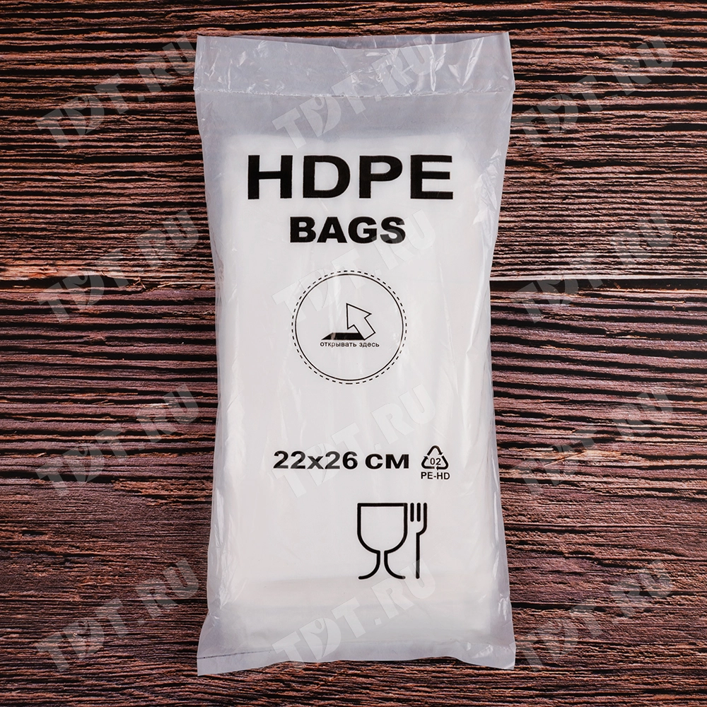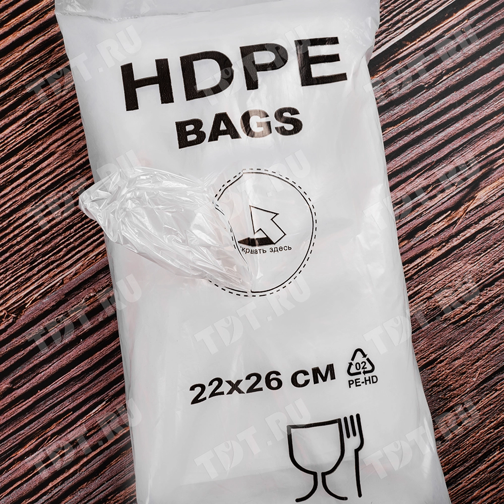 Прозрачные фасовочные пакеты ПНД в пластах для упаковки длиной 26 см, шириной 14+8 см, толщиной 8 мкм, в упаковке по 700 штук. Материал – полиэтилен низкого давления. Отвечают требованиям ГОСТа на плёнку ПНД (16338-85). Производятся в России.