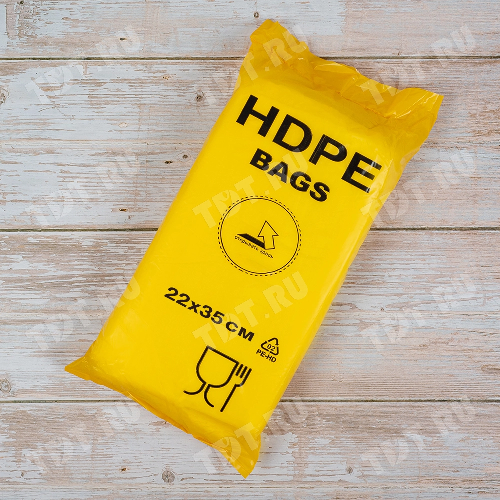 Пакеты фасовочные ПНД в пластах, желтая упаковка, А8, 14+8*35см, 8 мкм