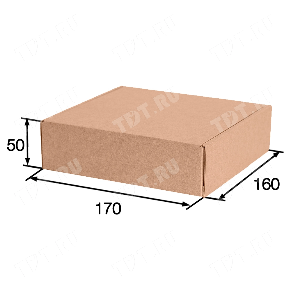 Короб КС-611 МГК, серии КС-600, бурый, длиной 170 мм, шириной 160 мм и высотой 50 мм. Изготовлен из микрогофрокартона Т-23. Полезный объём — 1.35 л.