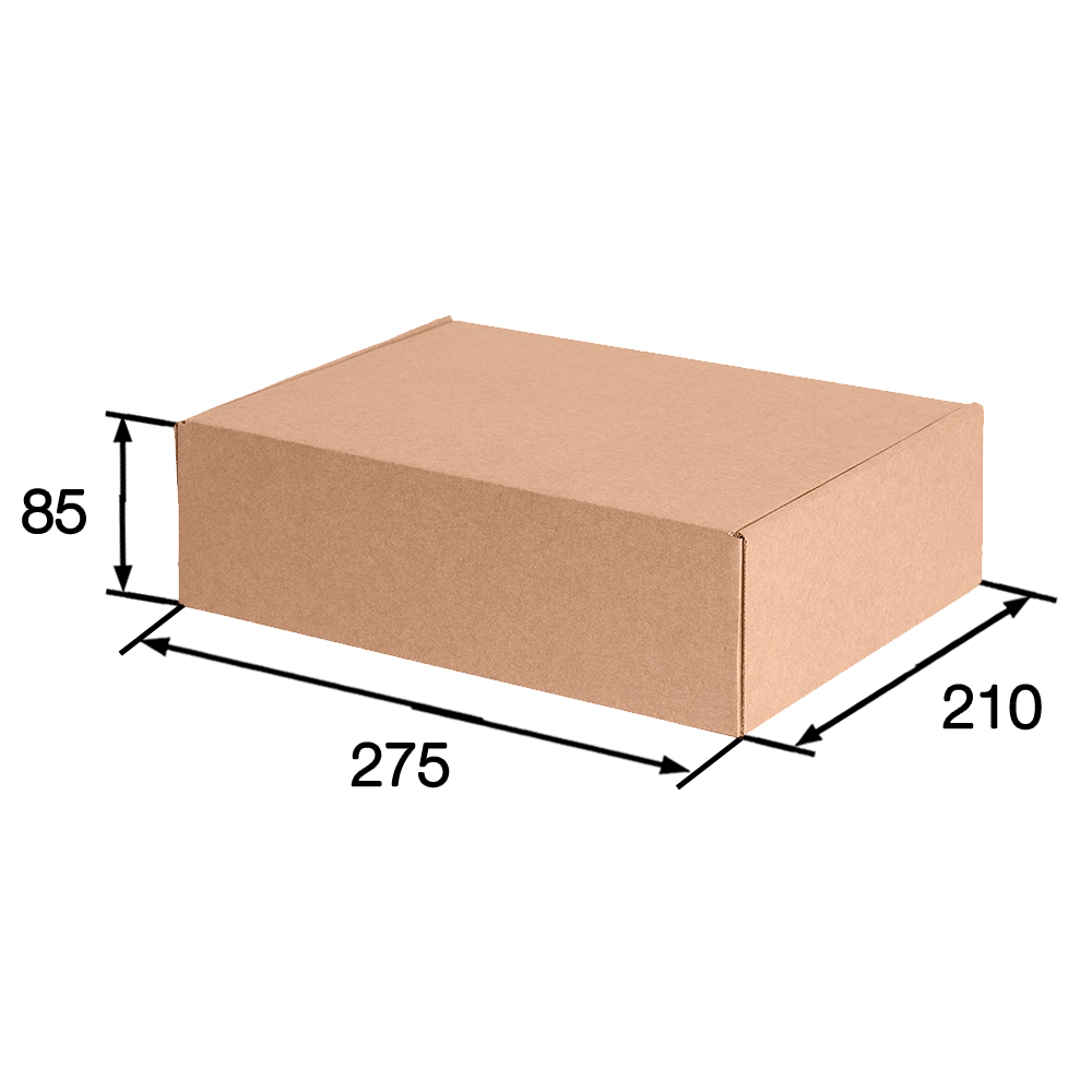 Короб КС-631 МГК, серии КС-600, бурый, длиной 275 мм, шириной 210 мм и высотой 85 мм. Изготовлен из микрогофрокартона Т-23. Полезный объём — 4.9 л.