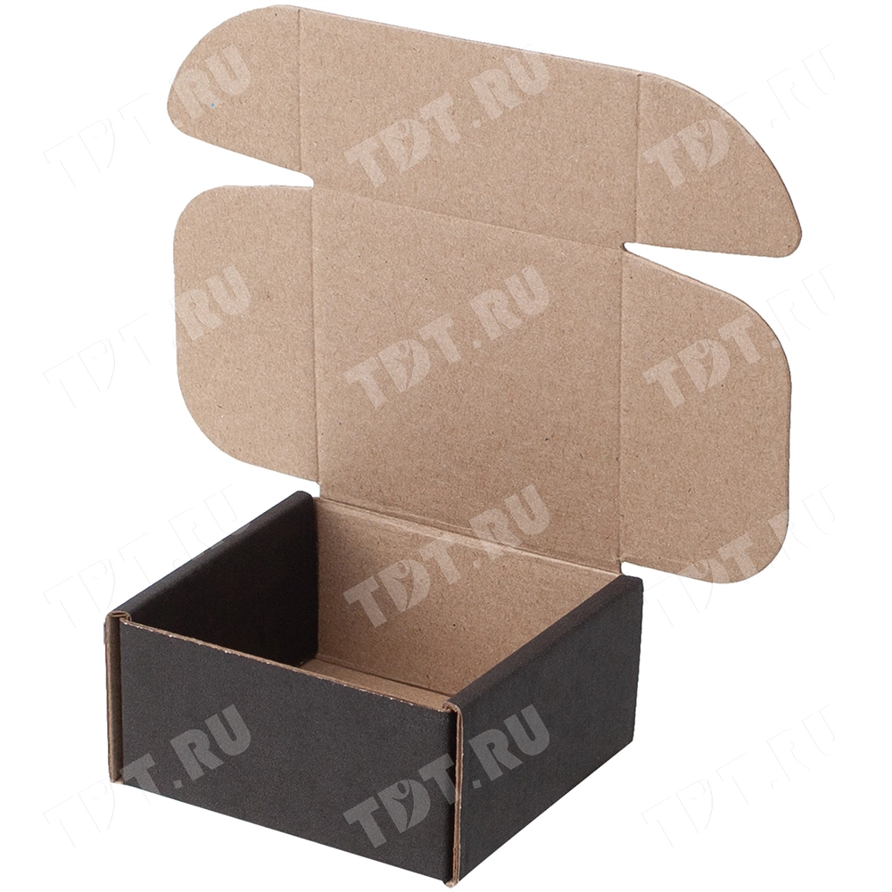 Короб КС-502 МГФ, серии КС-500, чёрный, длиной 50 мм, шириной 50 мм и высотой 25 мм. Изготовлен из микрогофрокартона Т-25. Полезный объём — 0.063л.