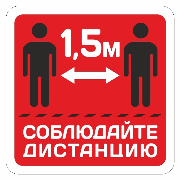 Квадратные наклейки «1,5м Соблюдайте дистанцию» в упаковке по 10 штук (по 2 штуки на листах А4), красного цвета, длиной 15 мм, шириной 14.85 мм. Производятся в России.