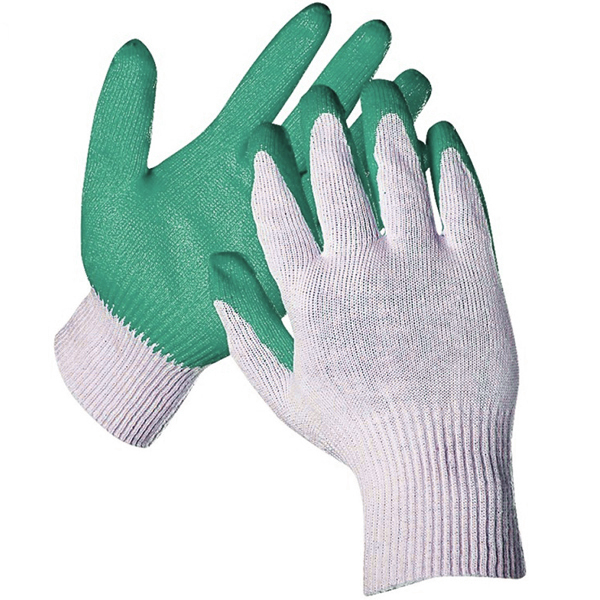 Универсальные перчатки х/б с одинарным латексным покрытием зеленого цвета.