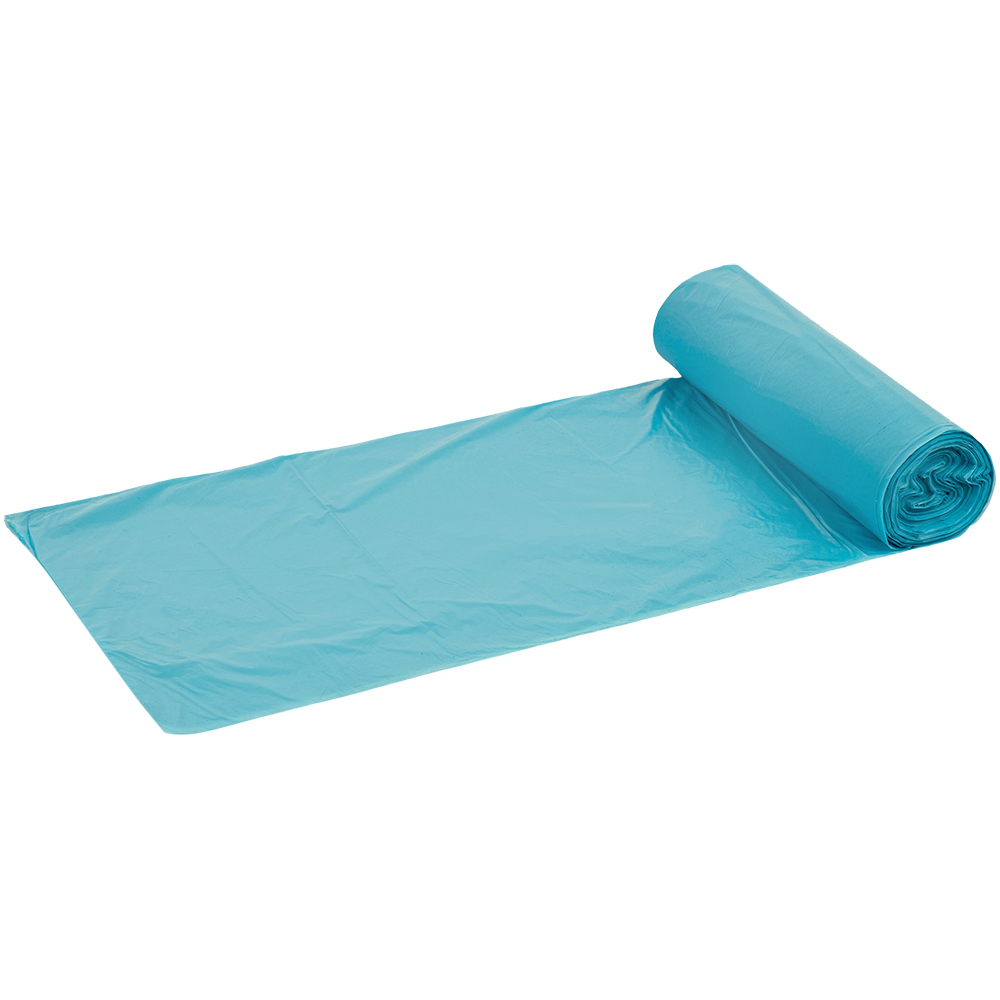 Мешки для мусора Komfi ПНД, код производителя 17176, голубого цвета, объемом 120 л, длиной 100 см, шириной 70 см, толщиной 14 мкм, в упаковке по 10 штук. Изготовлены из полиэтилена низкого давления (ПНД).