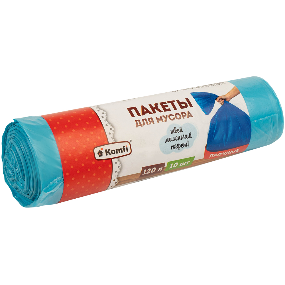 Мешки для мусора ПНД Komfi 120 литров, 70*100 см, голубые, 10 шт./рулон