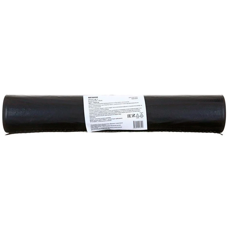 Мусорные строительные мешки для профессионального и бытового применения, особопрочные, черного цвета, объемом 120 л, длиной 103 см, шириной 65 см, толщиной 40 мкм, в упаковке по 9 штук. Изготовлены из полиэтилена высокого давления (ПВД). Производятся в России.