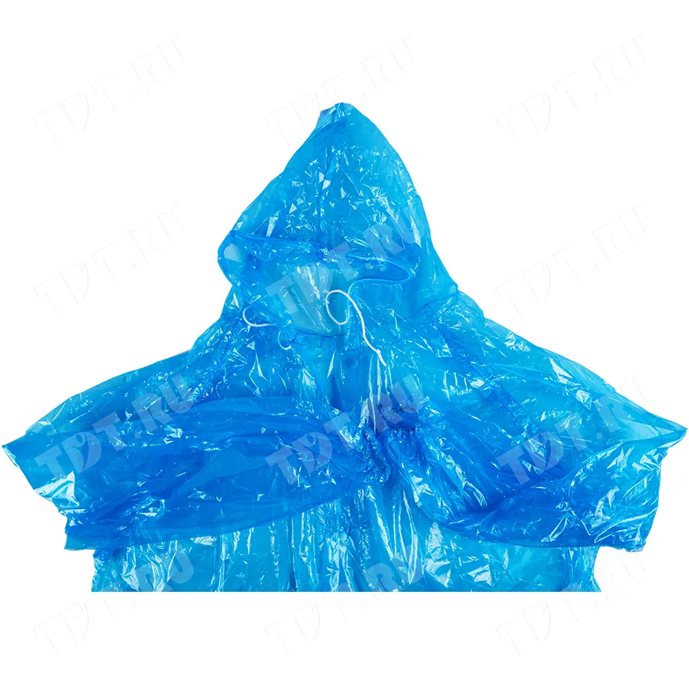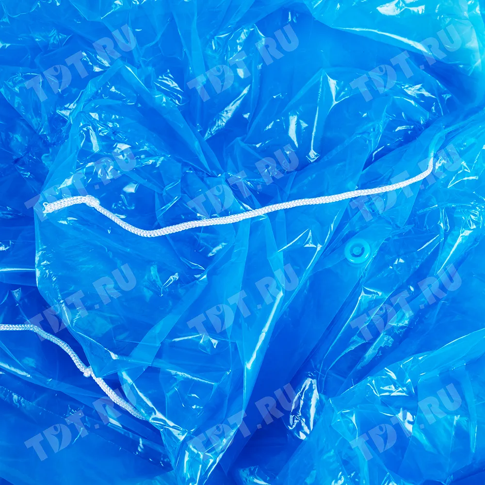 Область применения:Плащ-дождевик из полиэтилена применяется для надежной защиты от непогоды имеет прочные застежки, резинки на запястье руки и завязки на капюшоне.