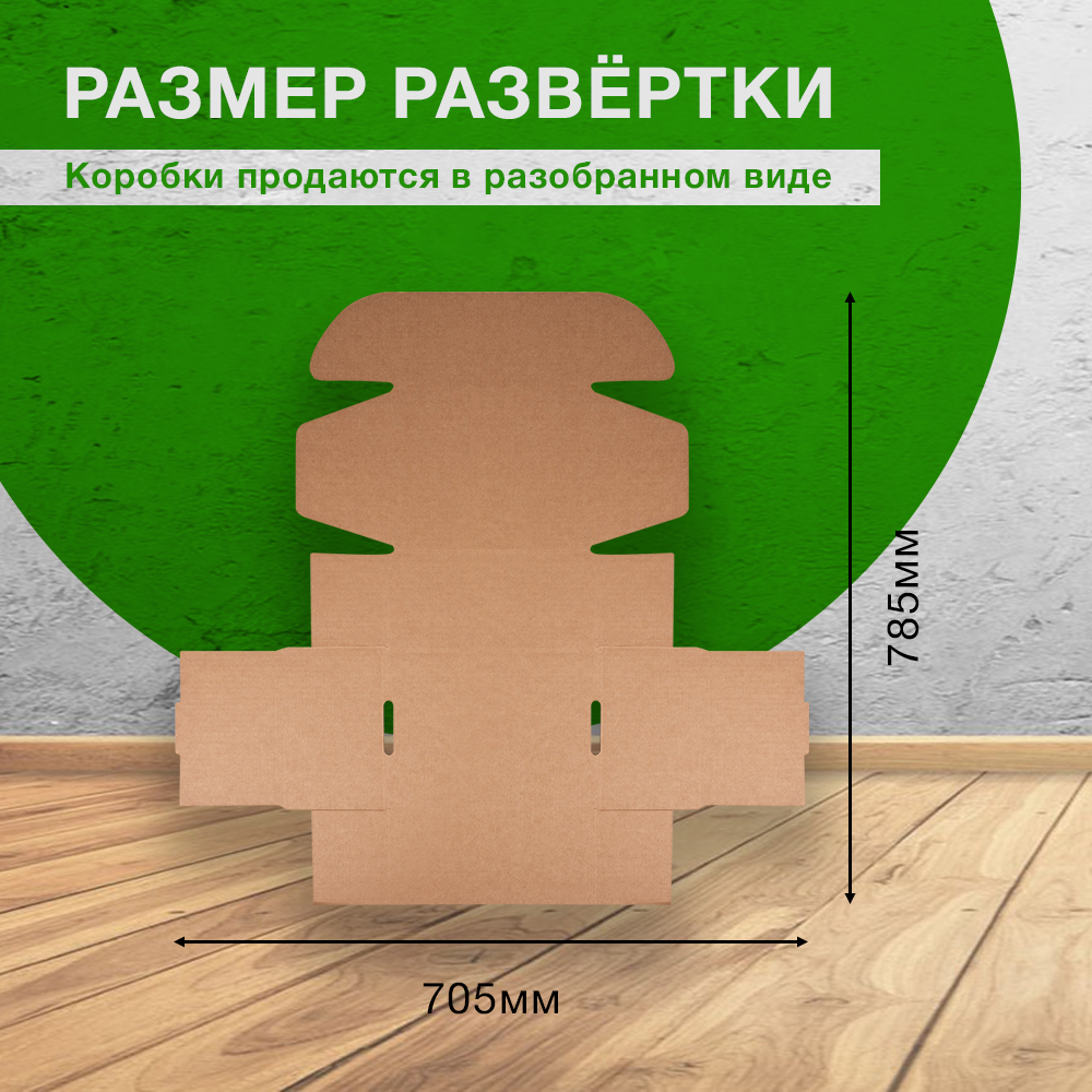 Короб №202 (премиум) бурого цвета, длиной 216 мм, шириной 175 мм и высотой 106 мм. Изготовлен из гофрокартона Т-23 В. Полезный объём — 4 л.
