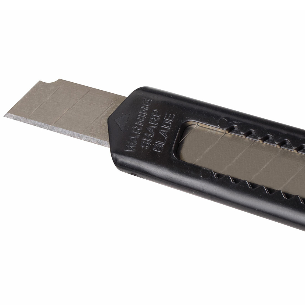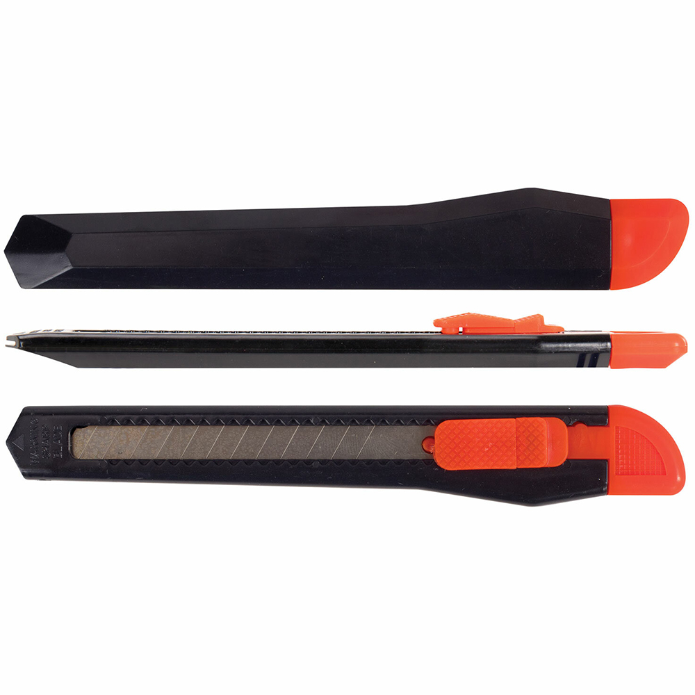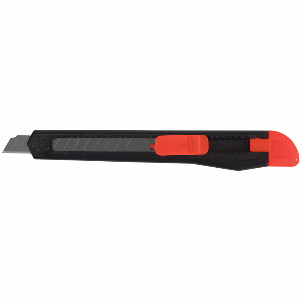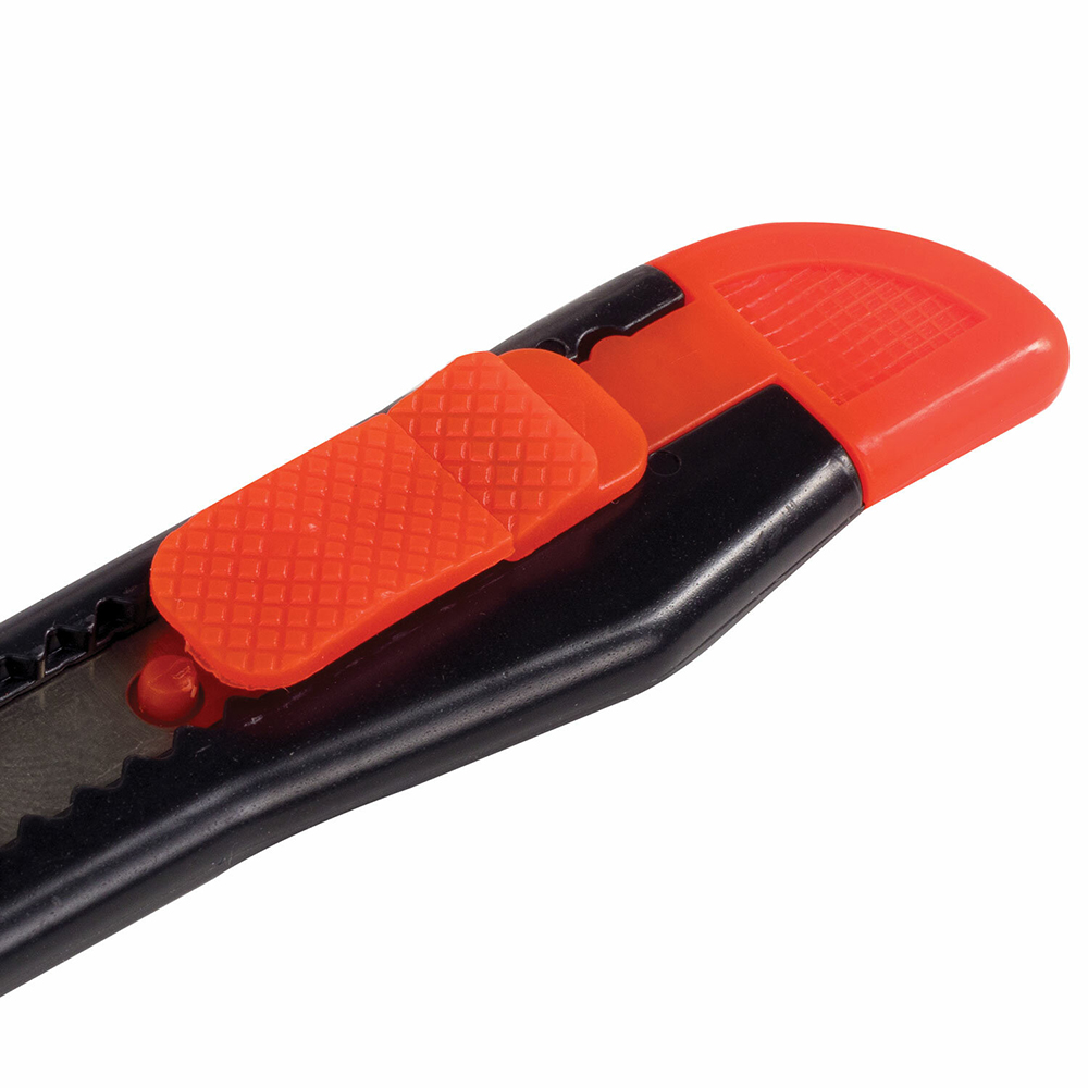 Нож канцелярский STAFF с отламываемым лезвием, код производителя 230484, Push-lock cutter, шириной 9 мм. Материал – пластик. Производится в Китае.