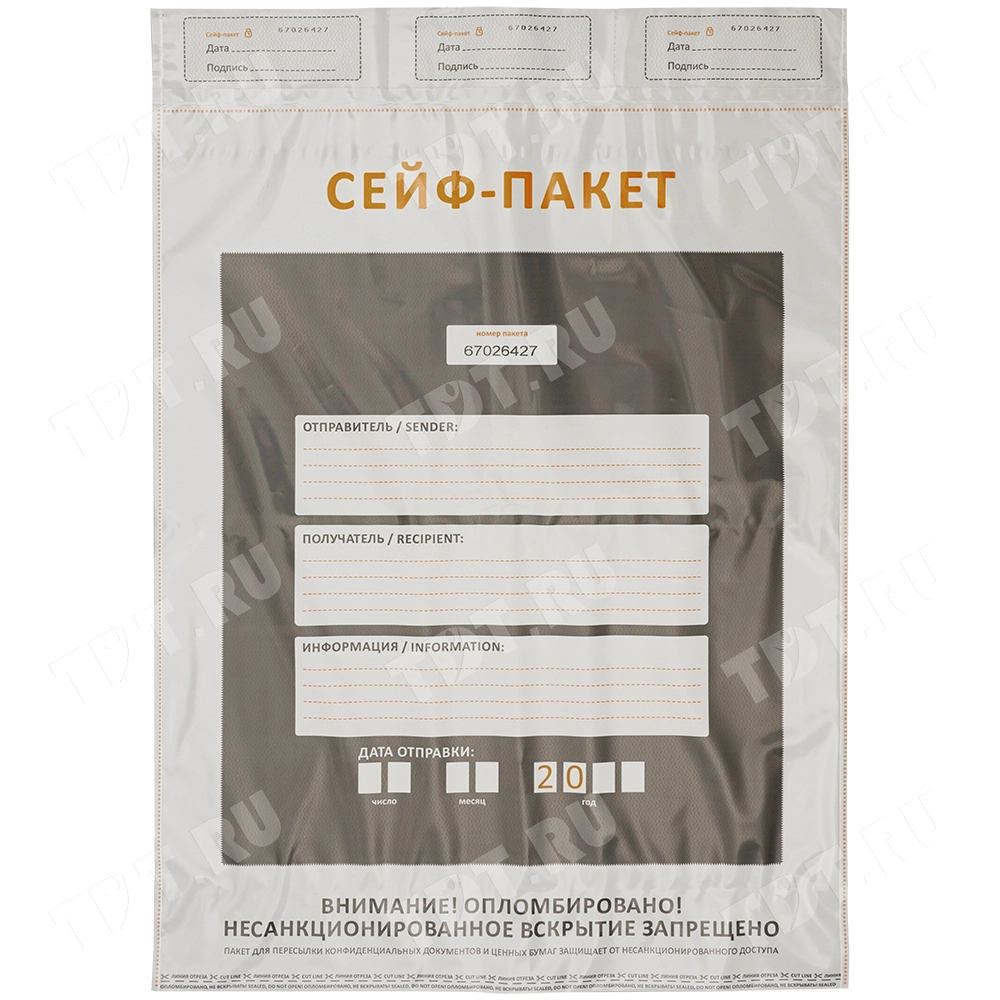 Полиэтиленовый сейф пакет для документов, 438*575 мм