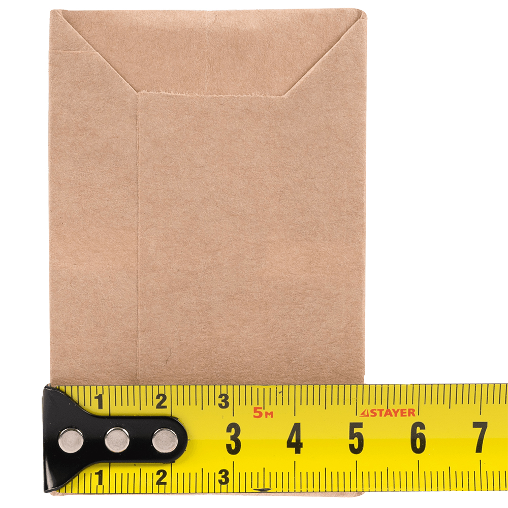Крафт-пакет с ламинацией, предназначенный для хранения кофейных зёрен и чайных листов. Длина пакета составляет 80 мм, ширина — 50 мм, а высота — 225 мм. Плотность пакета — 70 + 20 г/м².