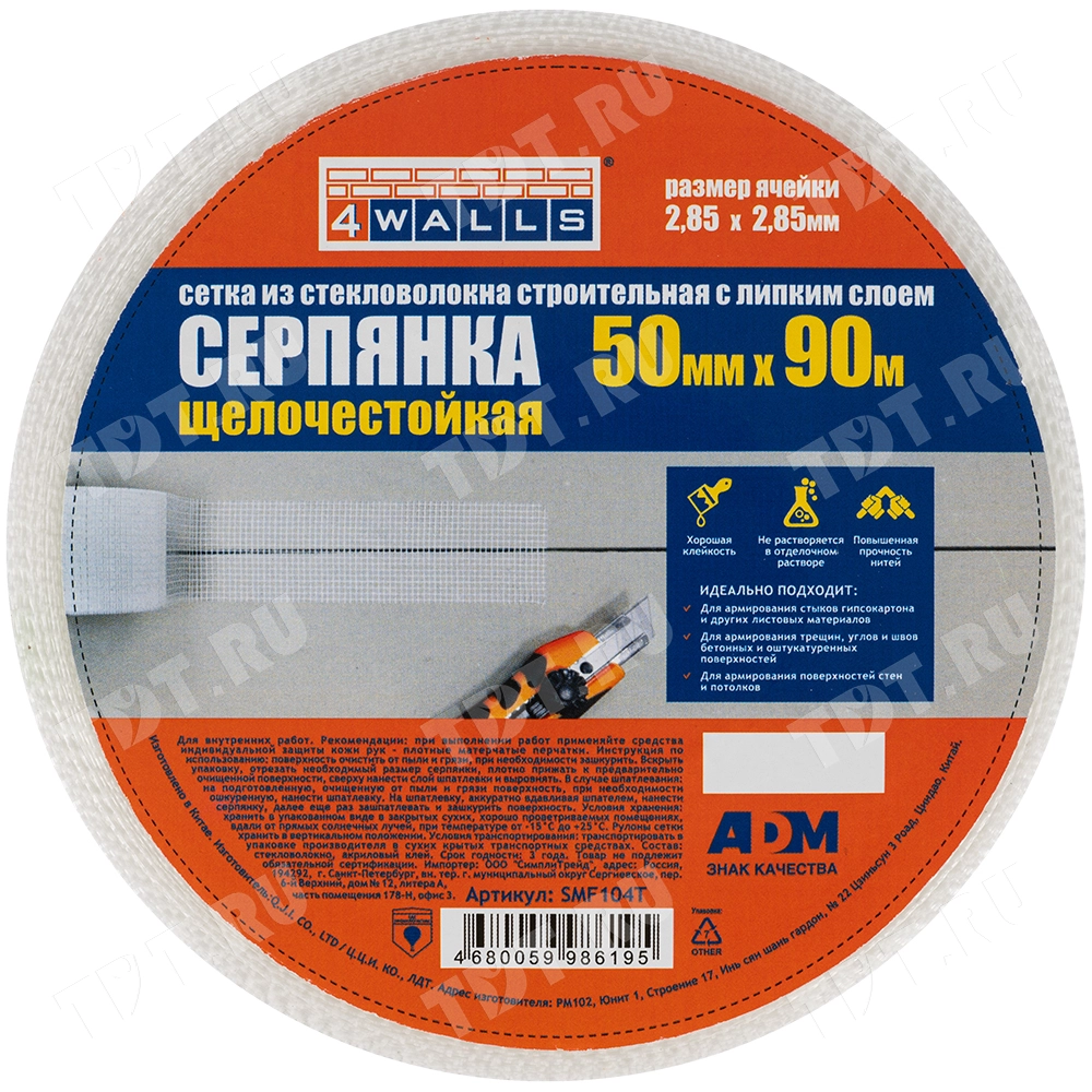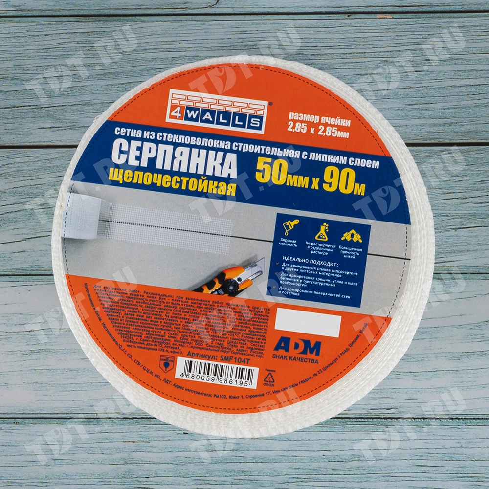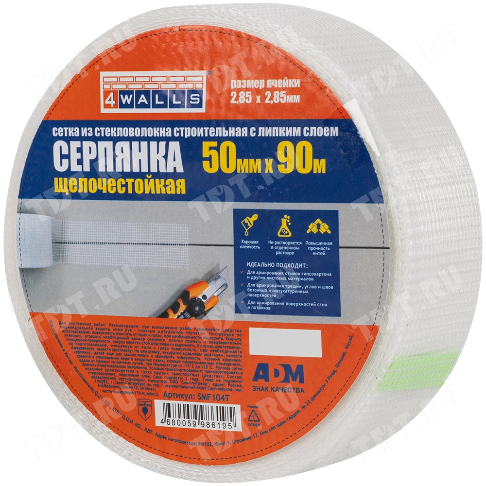Лента-серпянка производства компании „4Walls” изготовлена на основе стеклотканевого полотна. Сверху на базовую основу нанесен слой прочного клея.