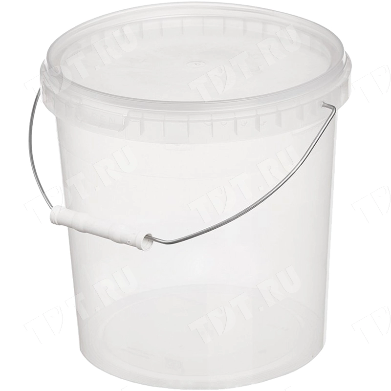 Прозрачные пластиковые ведра с крышками объемом 20 литров, высотой 334 мм, диаметром верха 340 мм, низа 288 мм. Материал – полипропилен. Производятся в России.