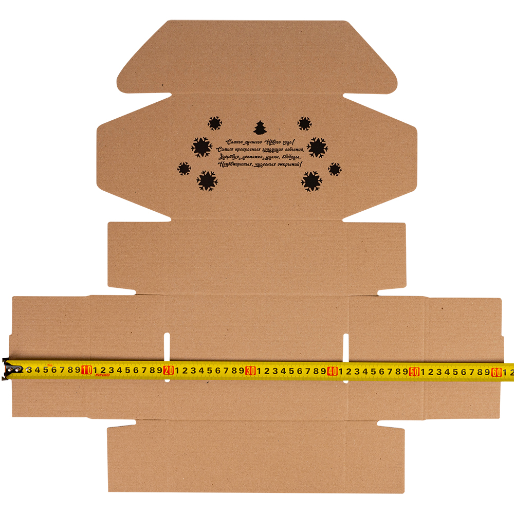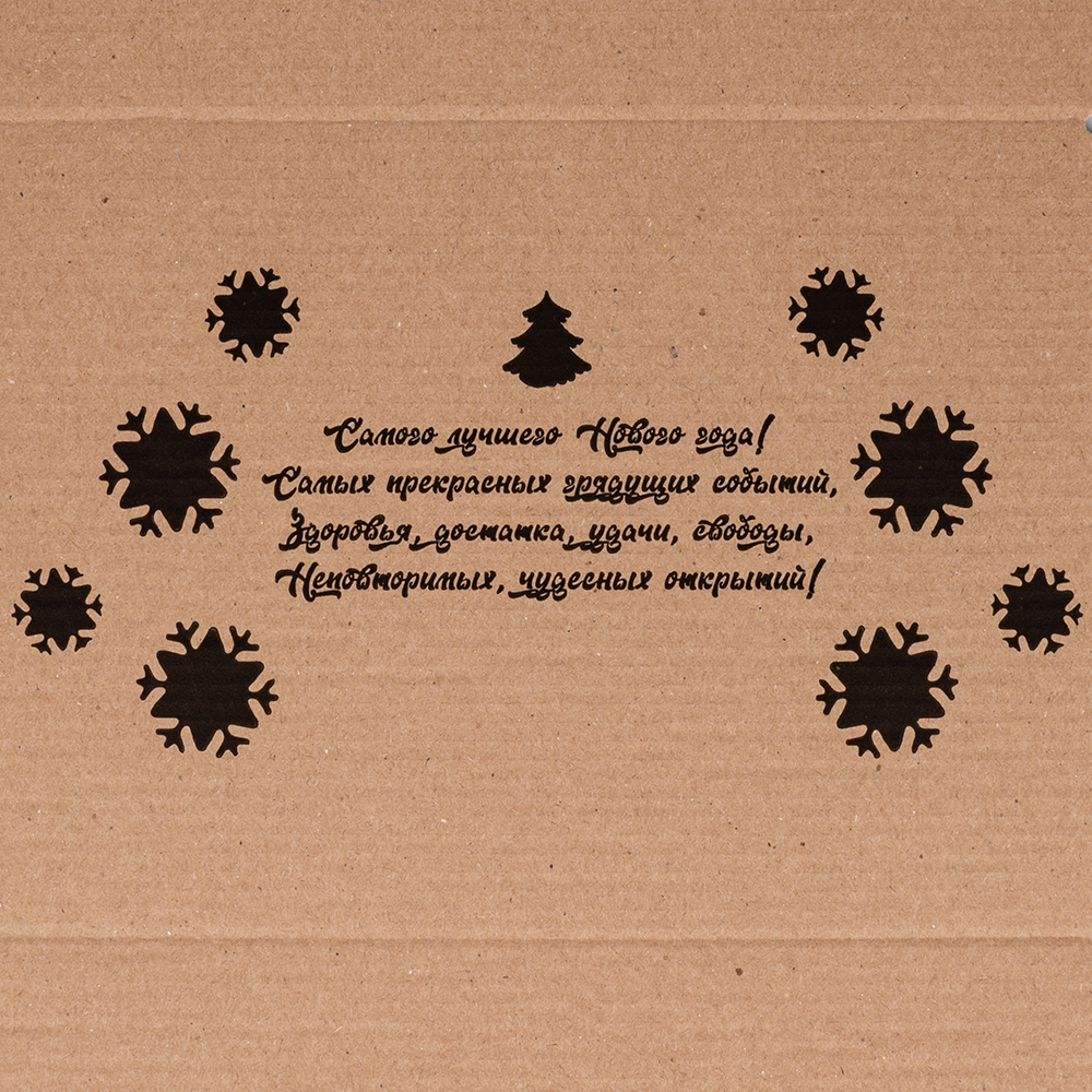 - Вам не придётся заучивать поздравительную речь, ведь на лицевой и внутренней сторонах коробки написаны новогодние поздравления, поэтому она всё скажет за вас.