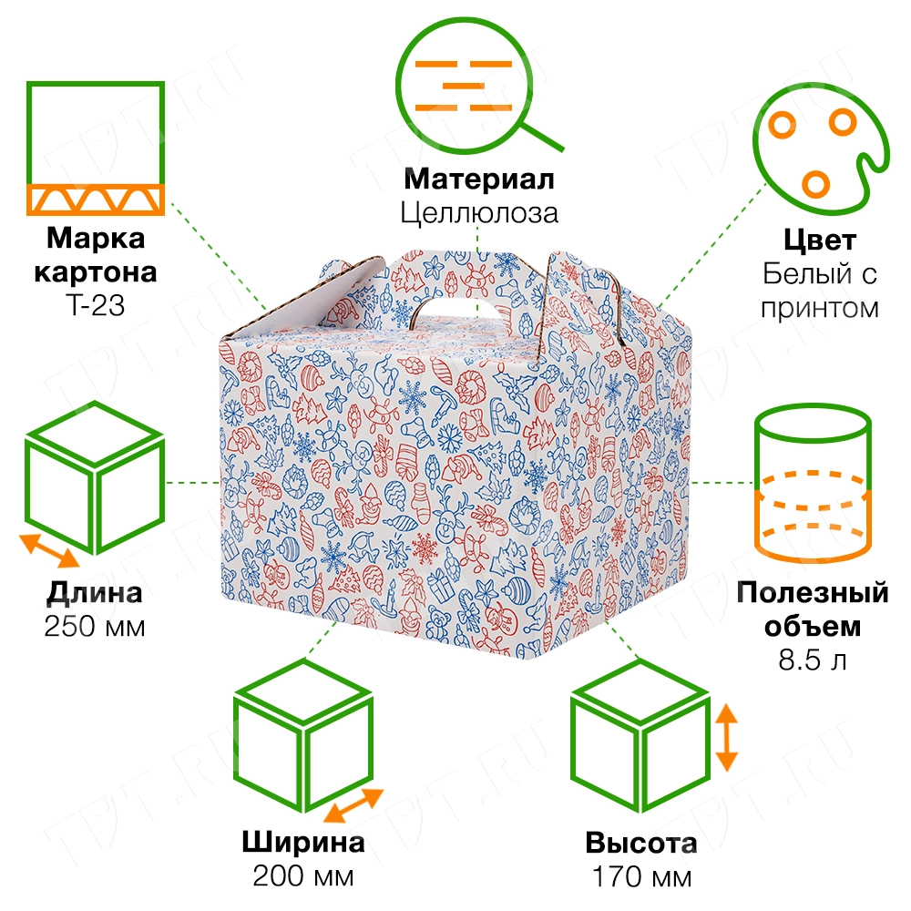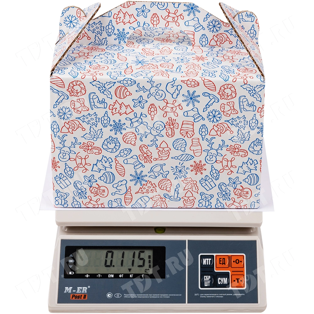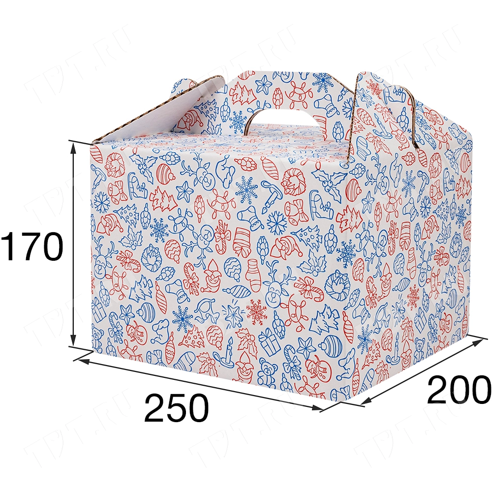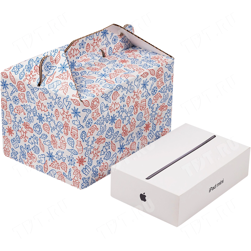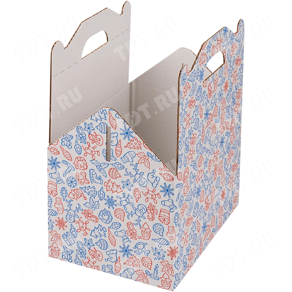- Вам не придётся украшать коробку самостоятельно, потому что на неё уже нанесён яркий принт в виде ёлочек, снежинок, шариков и других новогодних атрибутов.