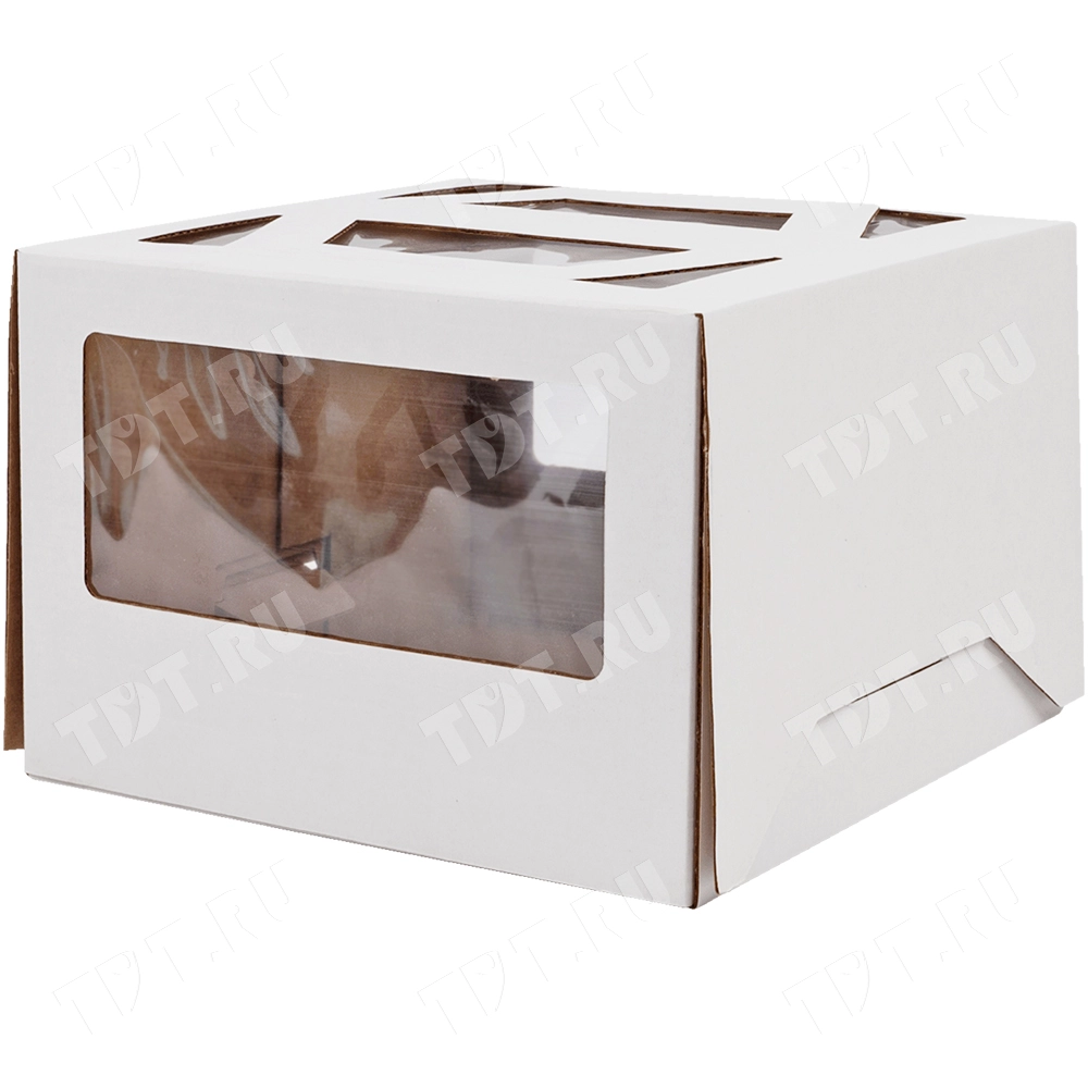 Короб для торта, с окнами и ручками, белый, 220*220*150 мм
