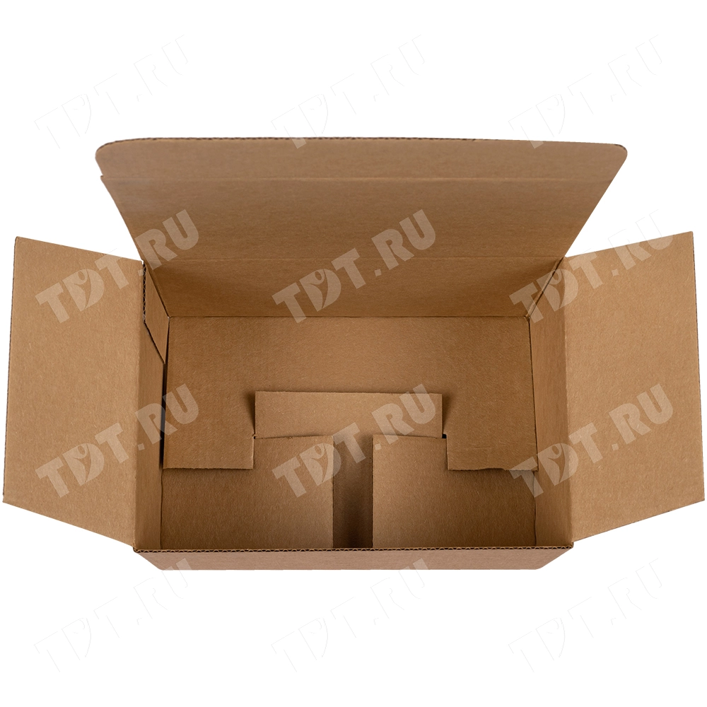 Коробка №160 бурого цвета, длиной 170 мм, шириной 120 мм и высотой 90 мм. Изготовлена из микрогофрокартона Т-23 Е. Полезный объём — 1.84 л.