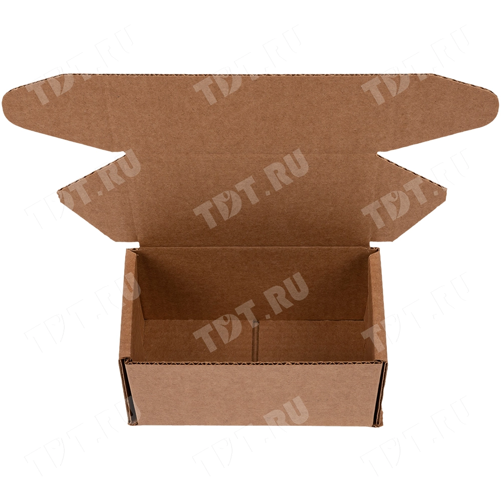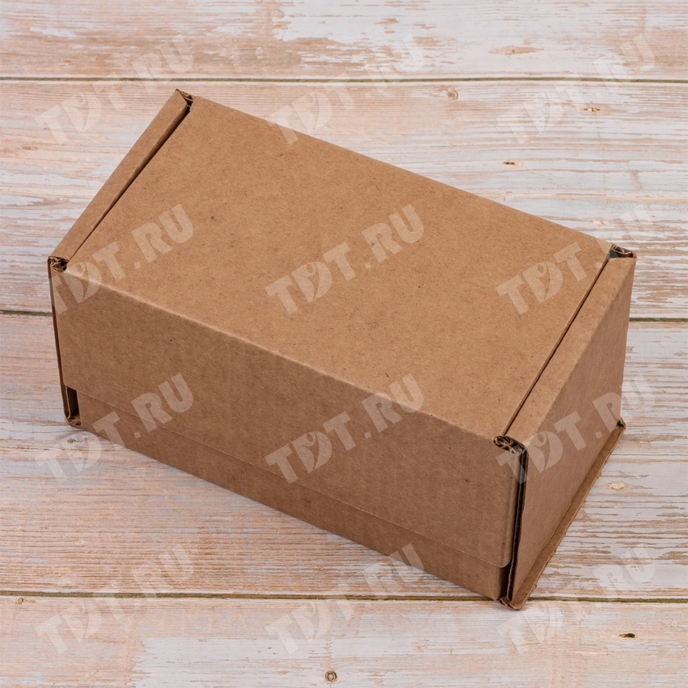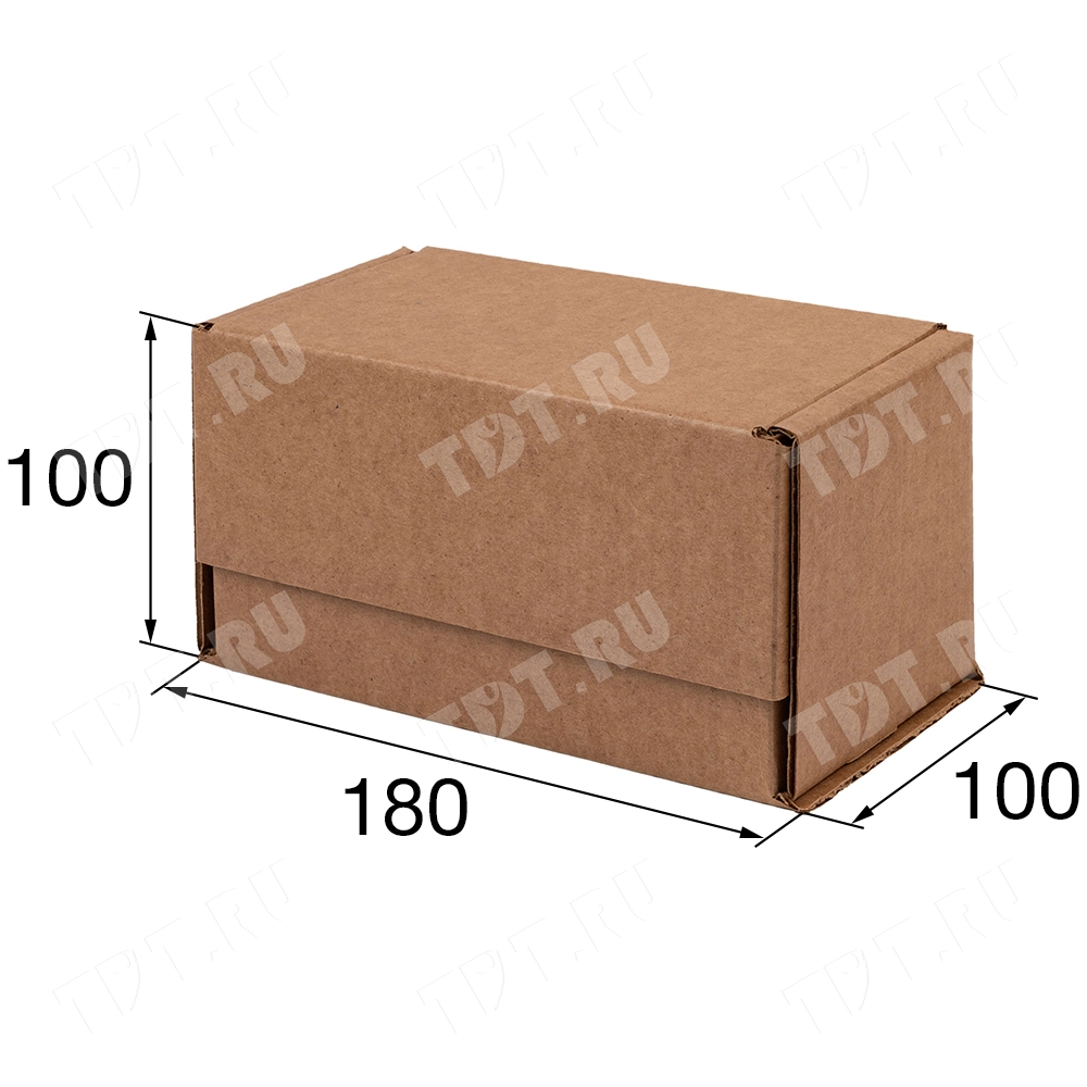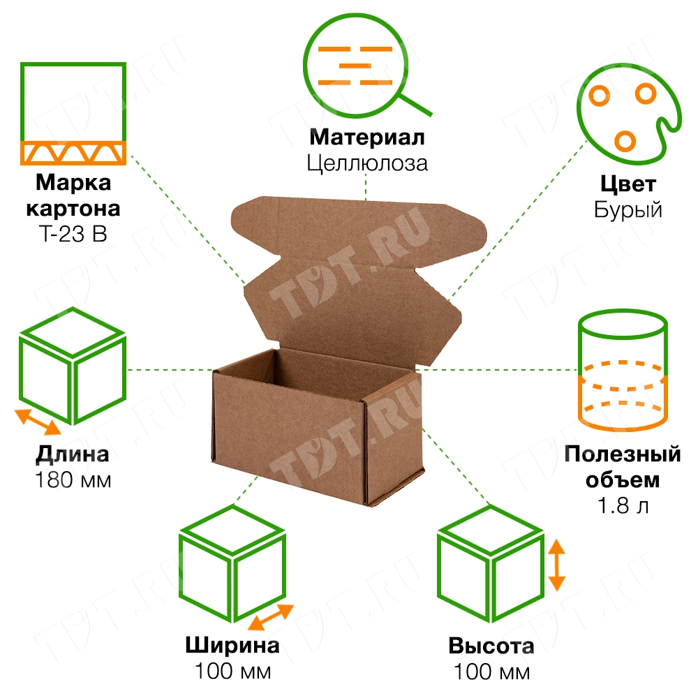 Коробка №162 бурого цвета, длиной 180 мм, шириной 100 мм и высотой 100 мм. Изготовлен из гофрокартона Т-23 В. Полезный объём — 1.8 л.