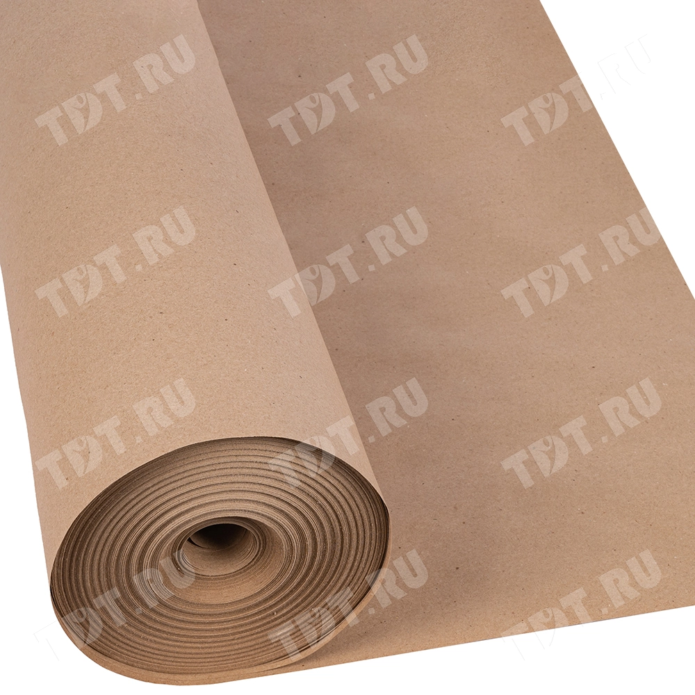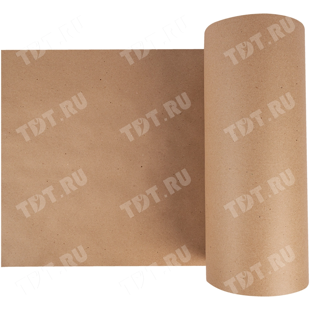 Оберточная крафт бумага в рулоне бурого цвета, шириной 42 см, намоткой 150 м, плотностью 80 г/м². Экологически чистый упаковочный материал из вторсырья. Производится в России.