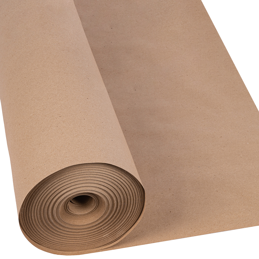 Оберточная крафт бумага в рулоне бурого цвета, шириной 84 см, намоткой 150 м, плотностью 80 г/м². Экологически чистый упаковочный материал из вторсырья. Производится в России.