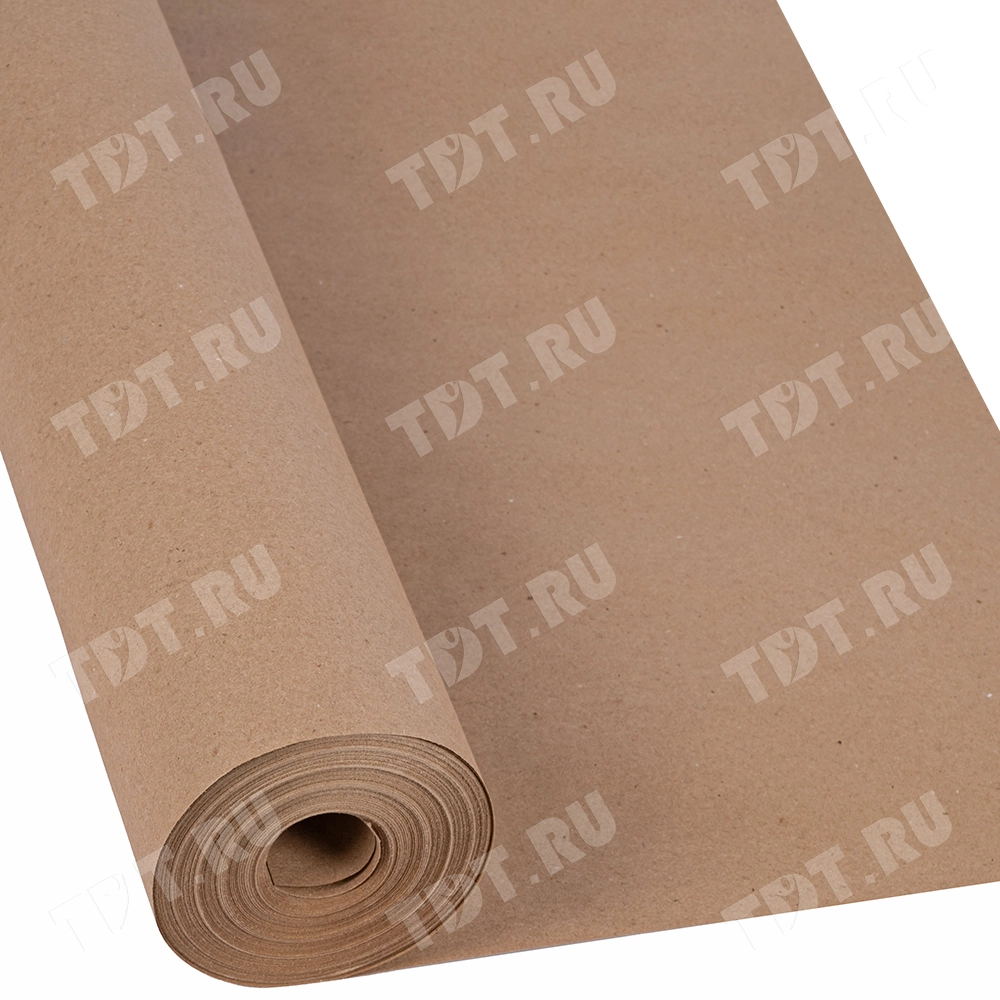 Оберточная крафт бумага в рулоне бурого цвета, шириной 1.05 м, намоткой 50 м, плотностью 80 г/м². Экологически чистый упаковочный материал из вторсырья. Производится в России.