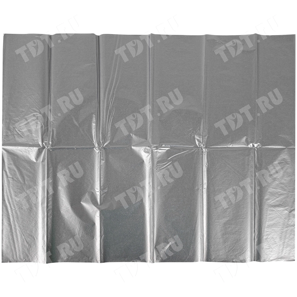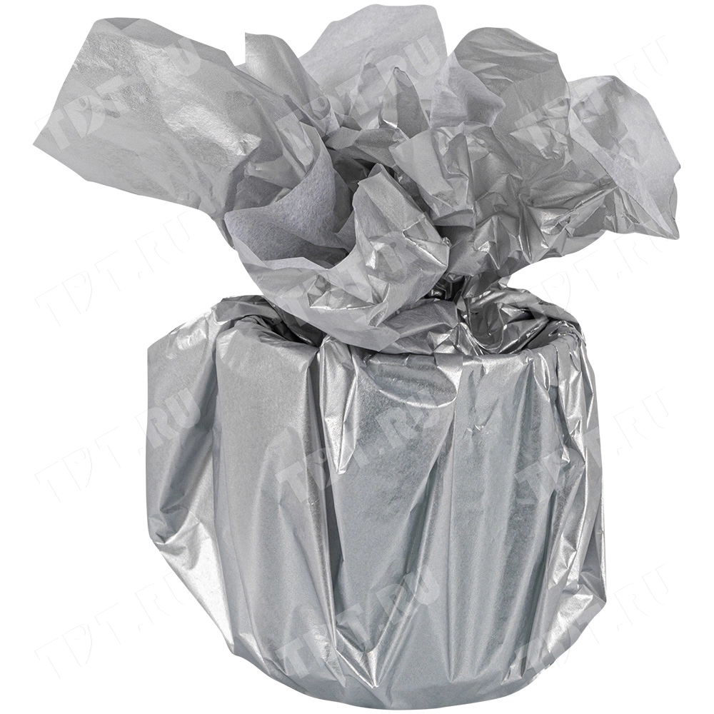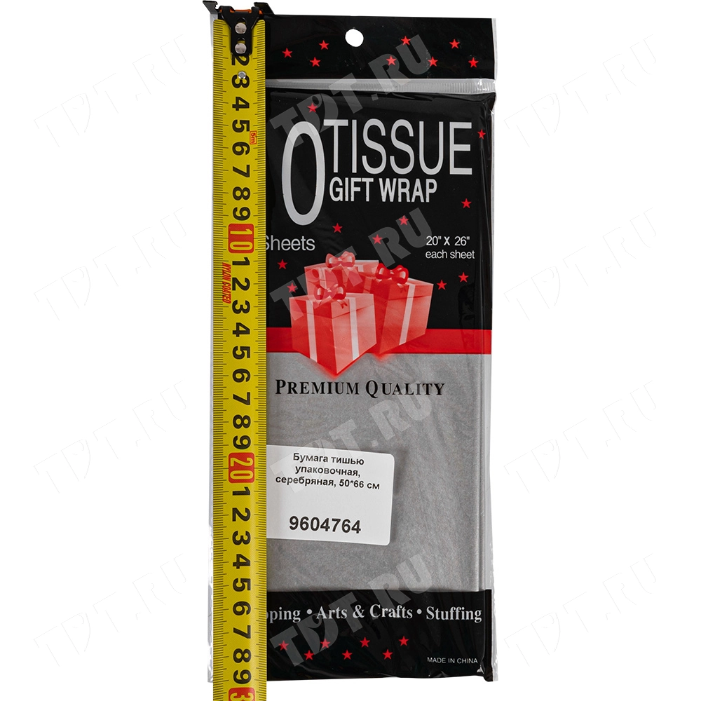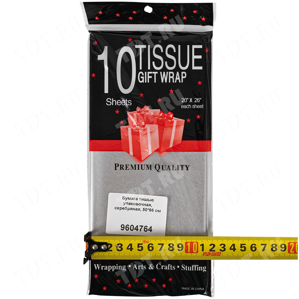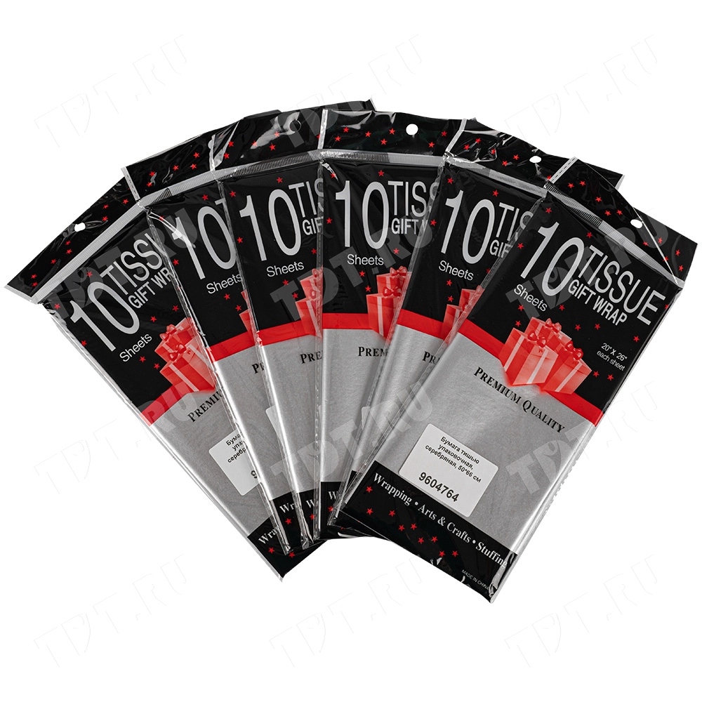 Серебряная бумага тишью шириной 50 см, длиной 66 см, плотностью 20 г/м² по 10 листов в упаковке. Шероховатая упаковочная бумага для оформления и украшения подарков.