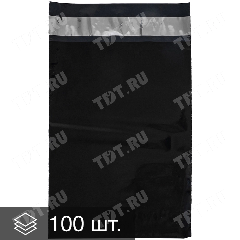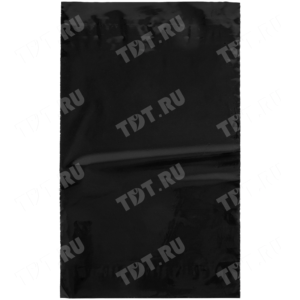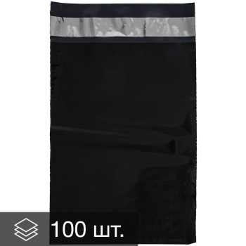 Чёрный курьер-пакет без кармана, без печати, длиной 240+40 мм, шириной 190 мм, толщиной 50 мкм. В упаковке 100 штук.