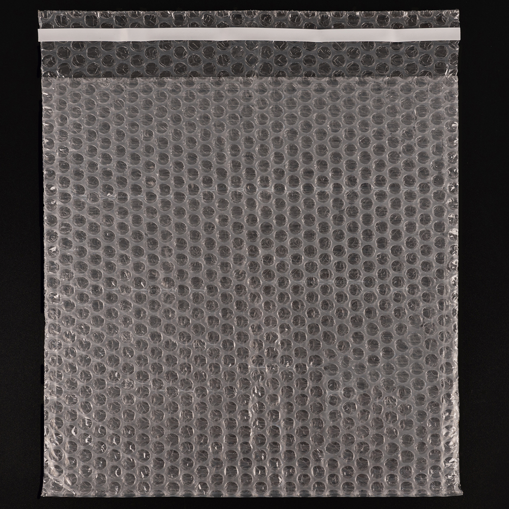 Прозрачный трехслойный воздушно-пузырчатый пакет длиной 20 см, шириной 20 см, с клеевым клапаном 5 см, диаметром пузырька 10 мм, плотностью 60 г/м². Изготовлен из полиэтилена. Производится в России компанией Бета-Куверт.