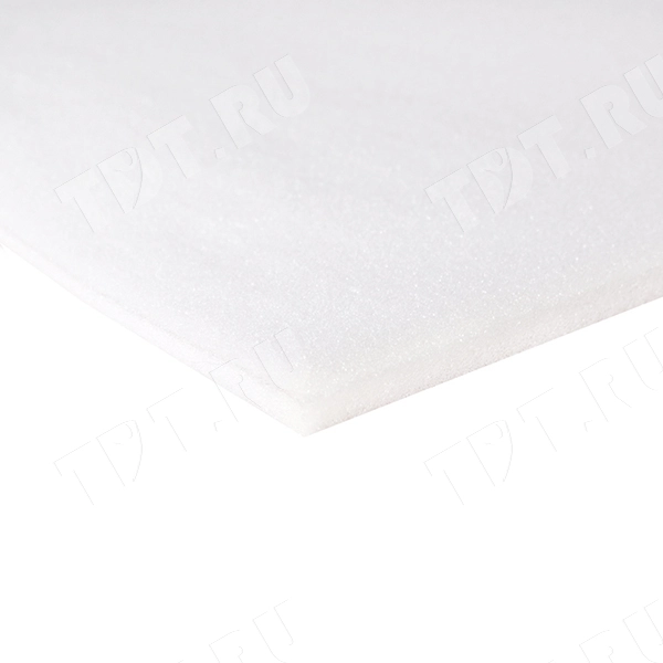 Листовой поролон ST, толщиной 10 мм, длиной 2000 мм, шириной 1000 мм, плотностью 18±1.0 кг/м³, жесткостью 2.5±0.6 кПа. В упаковке 5 листов. Производится в России.
