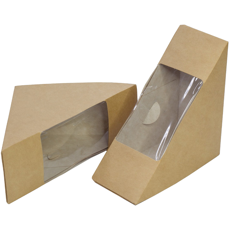 Контейнер для сэндвичей, с окном, крафт, 130*130*60 мм, 100 шт.