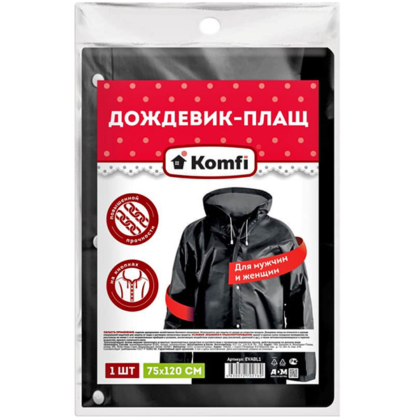 Стоимость одного плаща-дождевика EVA на кнопках Komfi составляет 248 ₽, включая НДС.