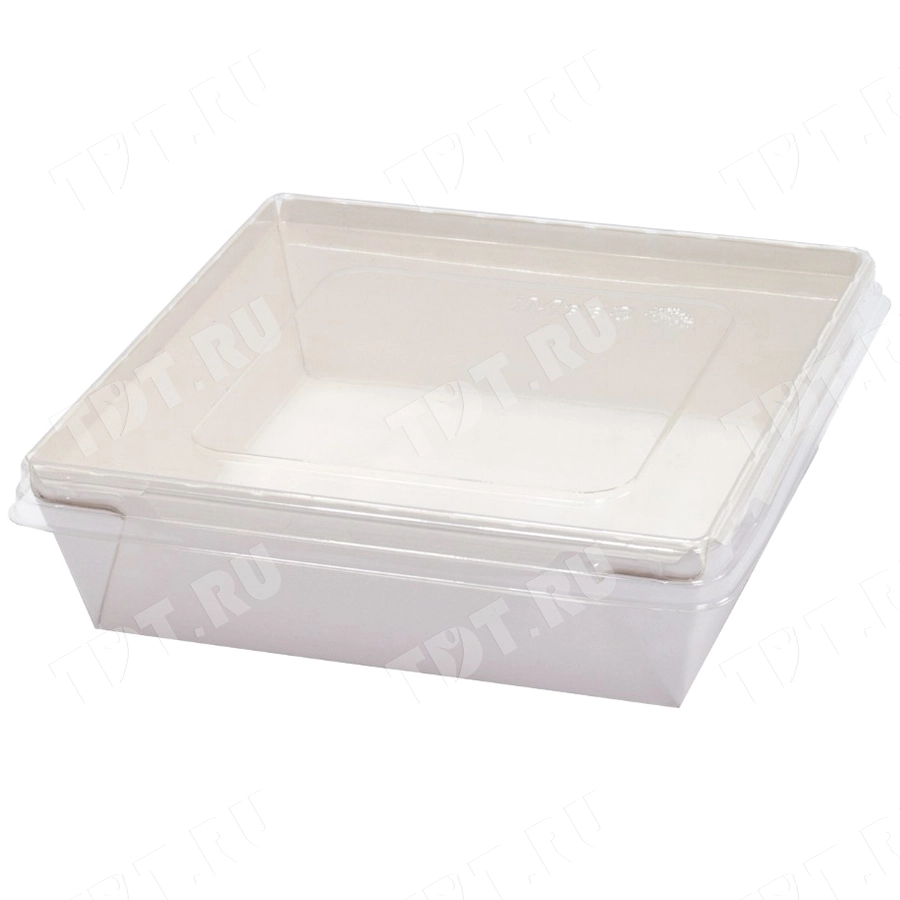 Контейнер «Crystal Box» с прозрачной крышкой, белый, 900 мл, 152*152*45 мм, 50 шт.