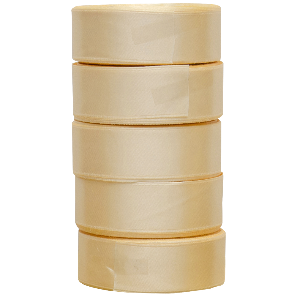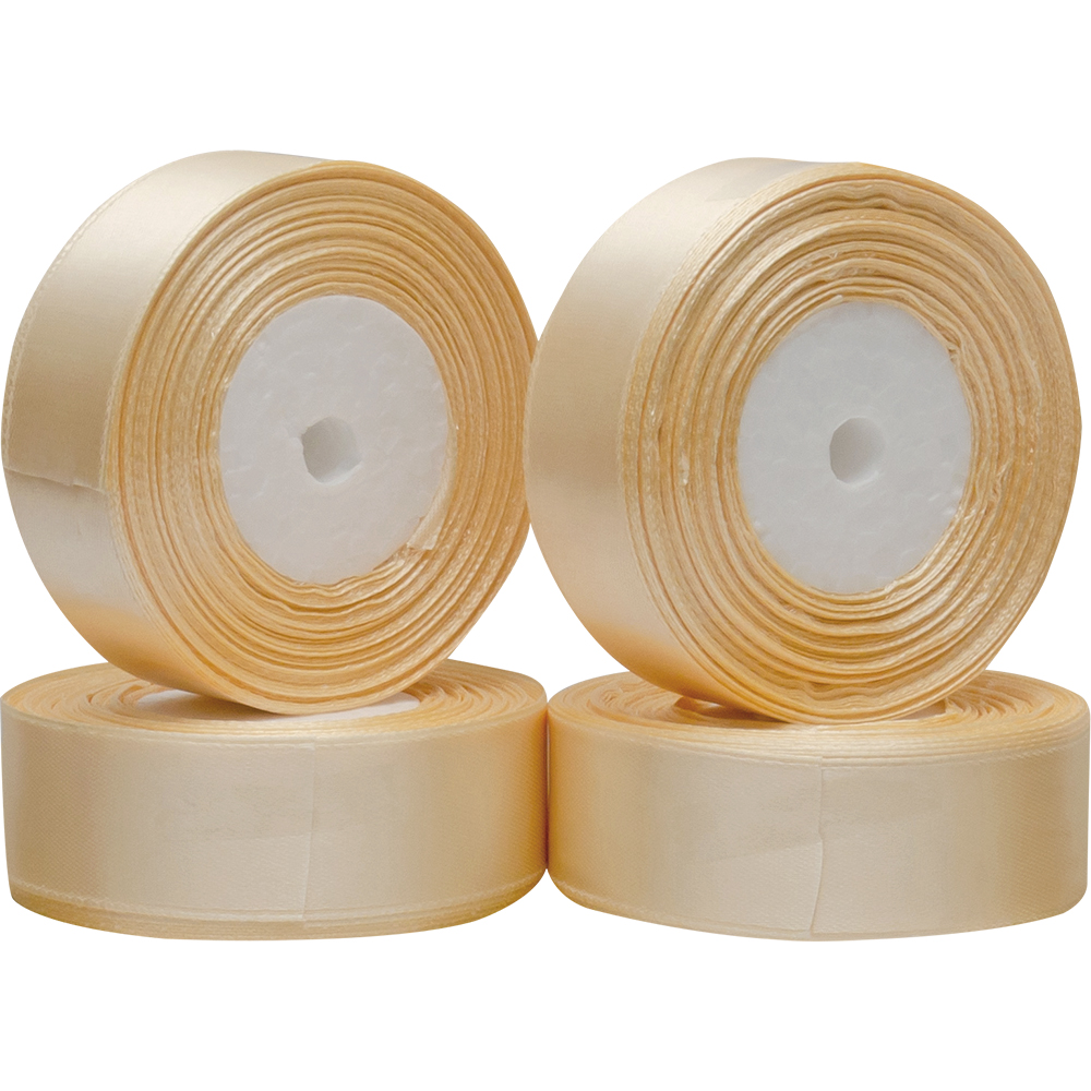 Атласная лента цвета шампань, шириной 25 мм, намоткой 23 метра. Шелковые ленты предназначены для отделки и декорирования изделий из ткани, оформления праздничных мероприятий, упаковки подарков и цветов.