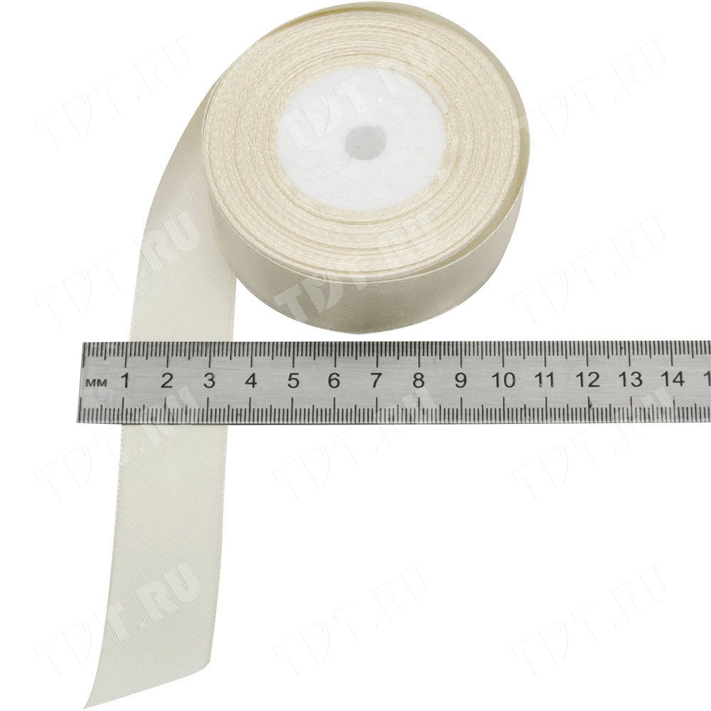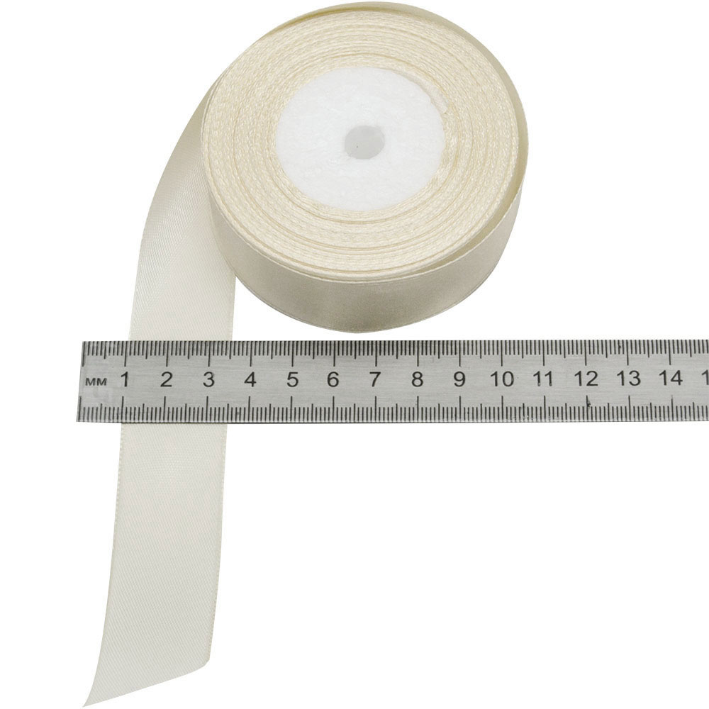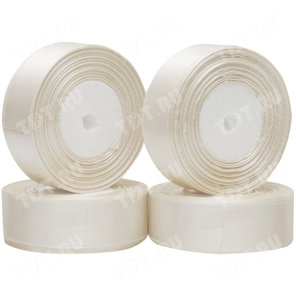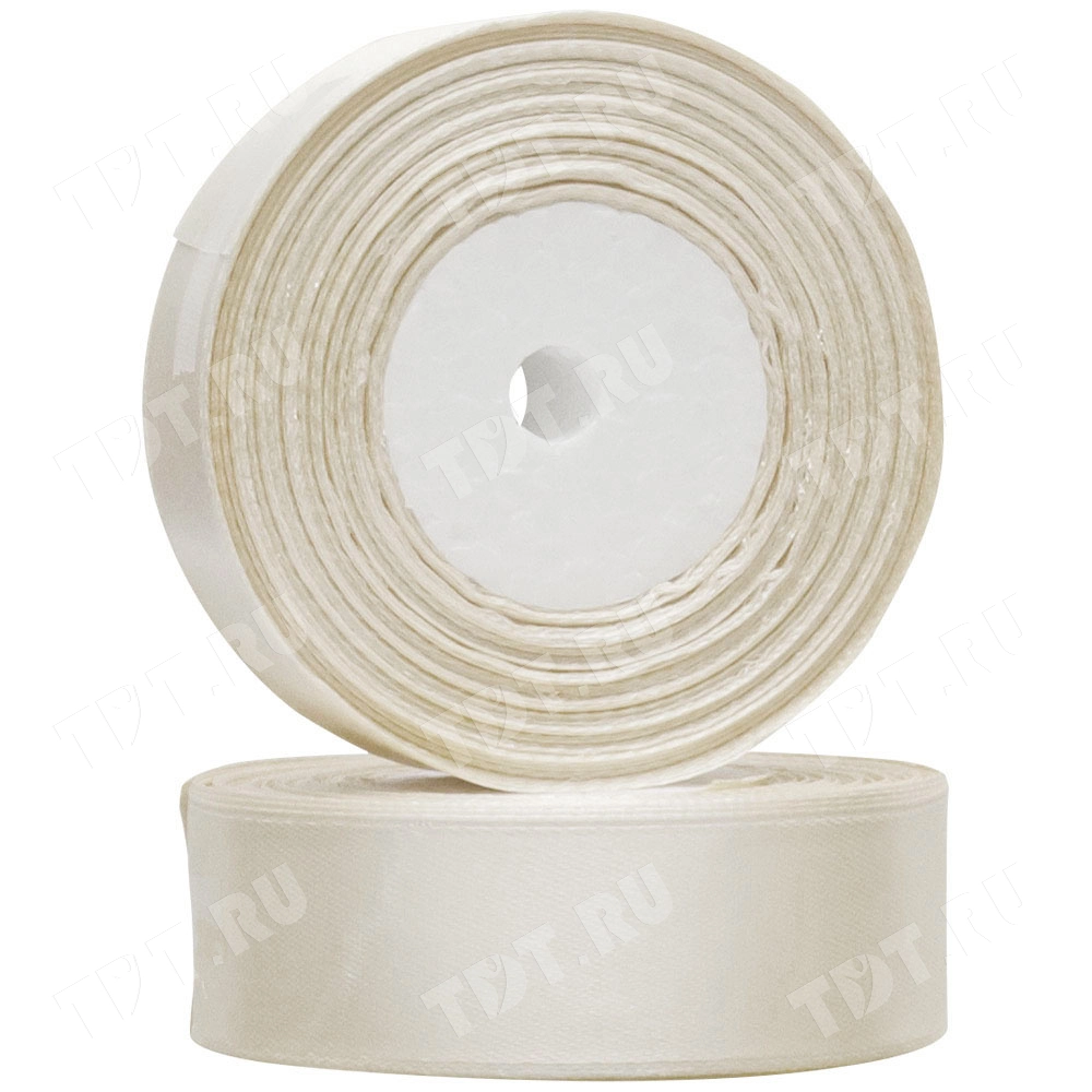 Атласная лента молочного цвета, шириной 25 мм, намоткой 23 метра. Шелковые ленты предназначены для отделки и декорирования изделий из ткани, оформления праздничных мероприятий, упаковки подарков и цветов.