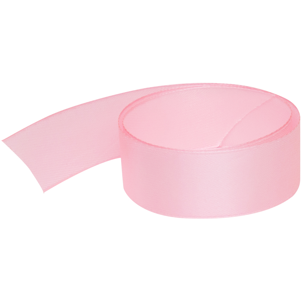 Атласная лента жемчужно-розового цвета, шириной 25 мм, намоткой 23 метра. Шелковые ленты предназначены для отделки и декорирования изделий из ткани, оформления праздничных мероприятий, упаковки подарков и цветов.