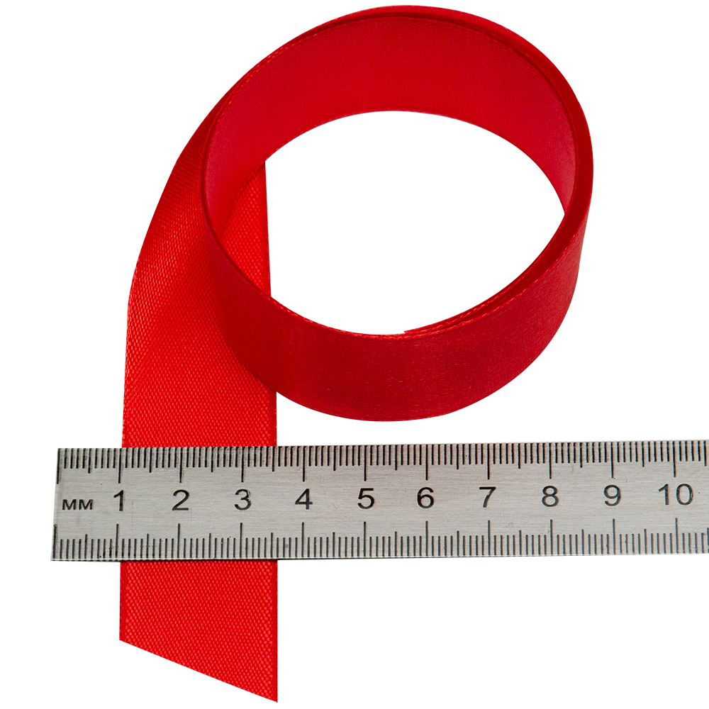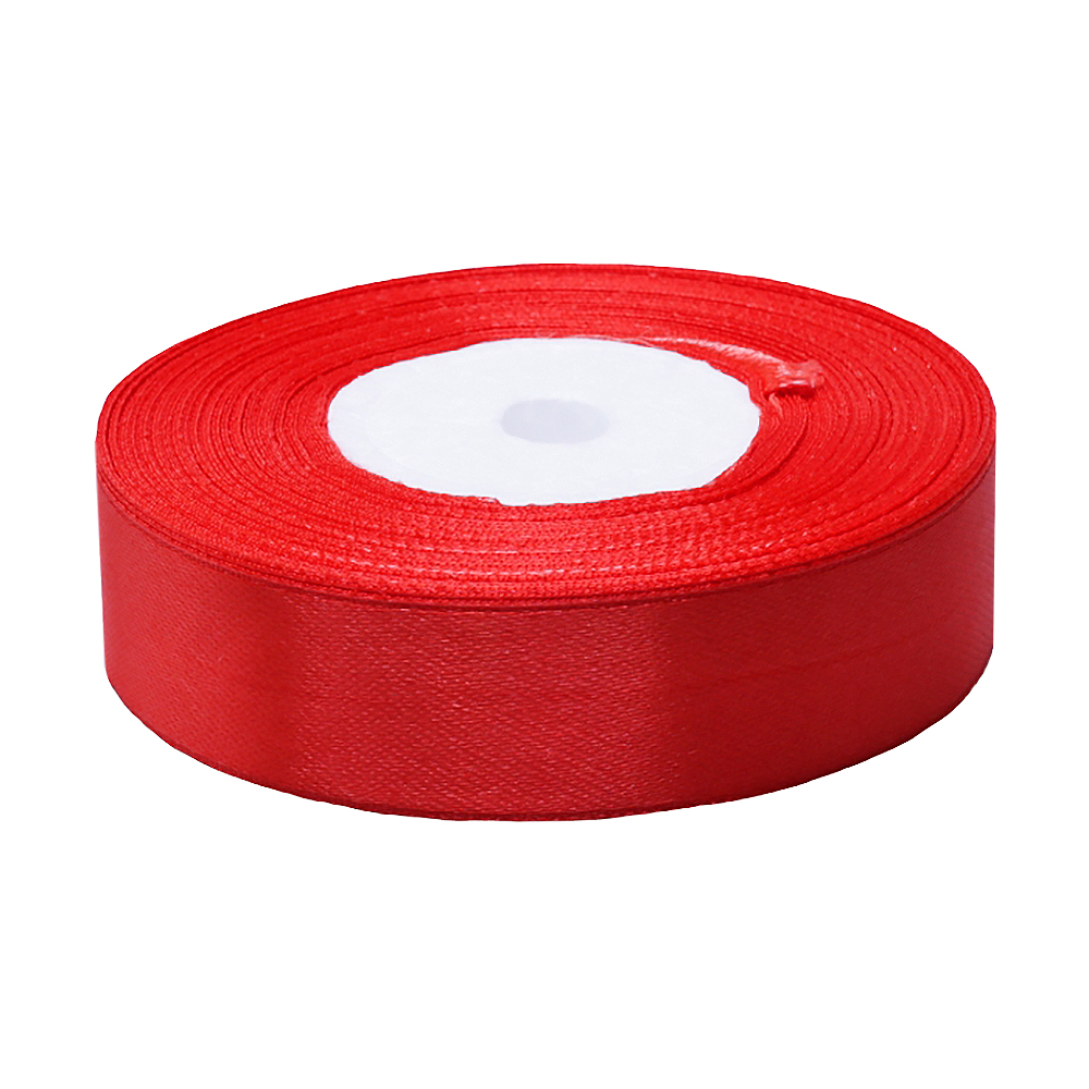 Атласная лента красного цвета, шириной 25 мм, намоткой 23 метра. Шелковые ленты предназначены для отделки и декорирования изделий из ткани, оформления праздничных мероприятий, упаковки подарков и цветов.