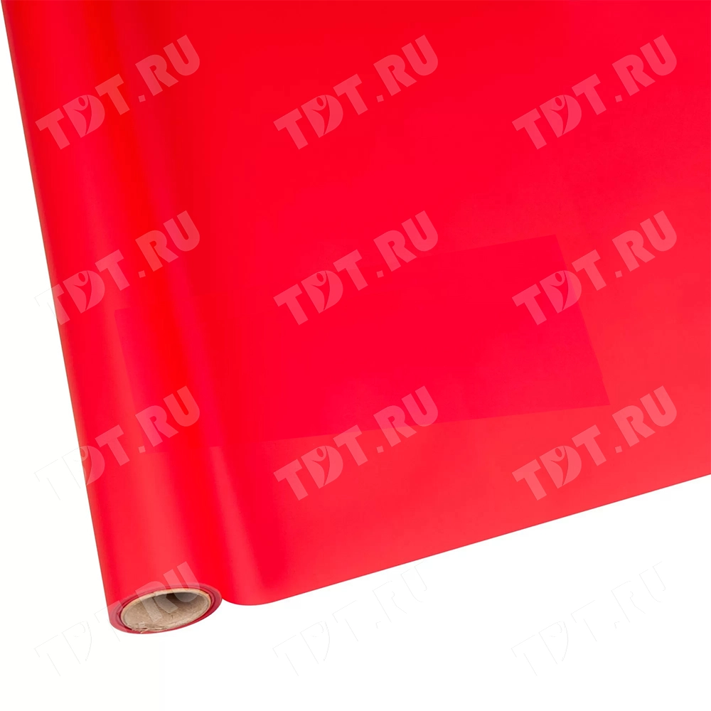 Пленка матовая «Фаворит» в рулоне, ярко-красного цвета, однотонная, шириной 58 см, намоткой 10 метров, толщиной 50 мкм. Производится в Вьетнаме.